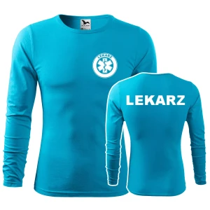 Koszulka męska z długim rękawem Fit-T LS 119 160g/m² z nadrukiem LEKARZ na sercu i plecach WSZYSTKIE KOLORY
