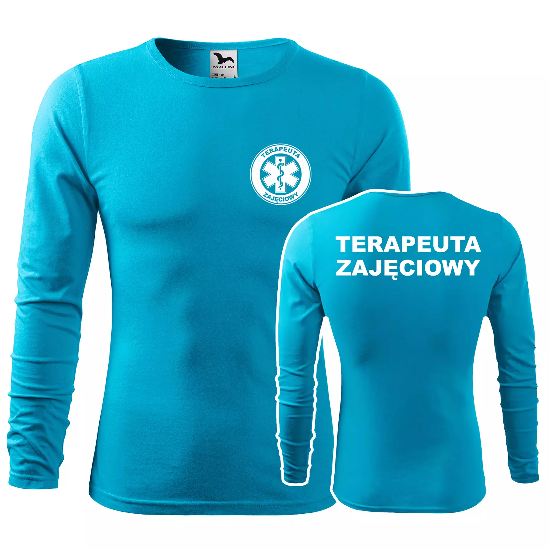 Koszulka męska z długim rękawem Fit-T LS 119 160g/m² z nadrukiem TERAPEUTA ZAJĘCIOWY na sercu i plecach WSZYSTKIE KOLORY