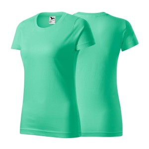 Koszulka miętowa z krótkim rękawem z logo a sercu damska z nadrukiem logo firmy 160g BASIC134 kolor 95 koszulka krótki rękaw