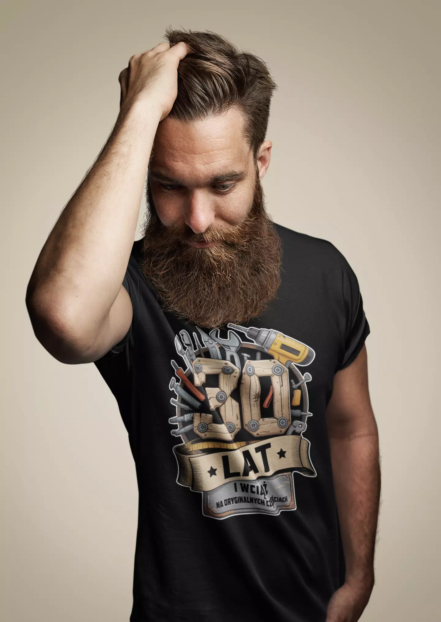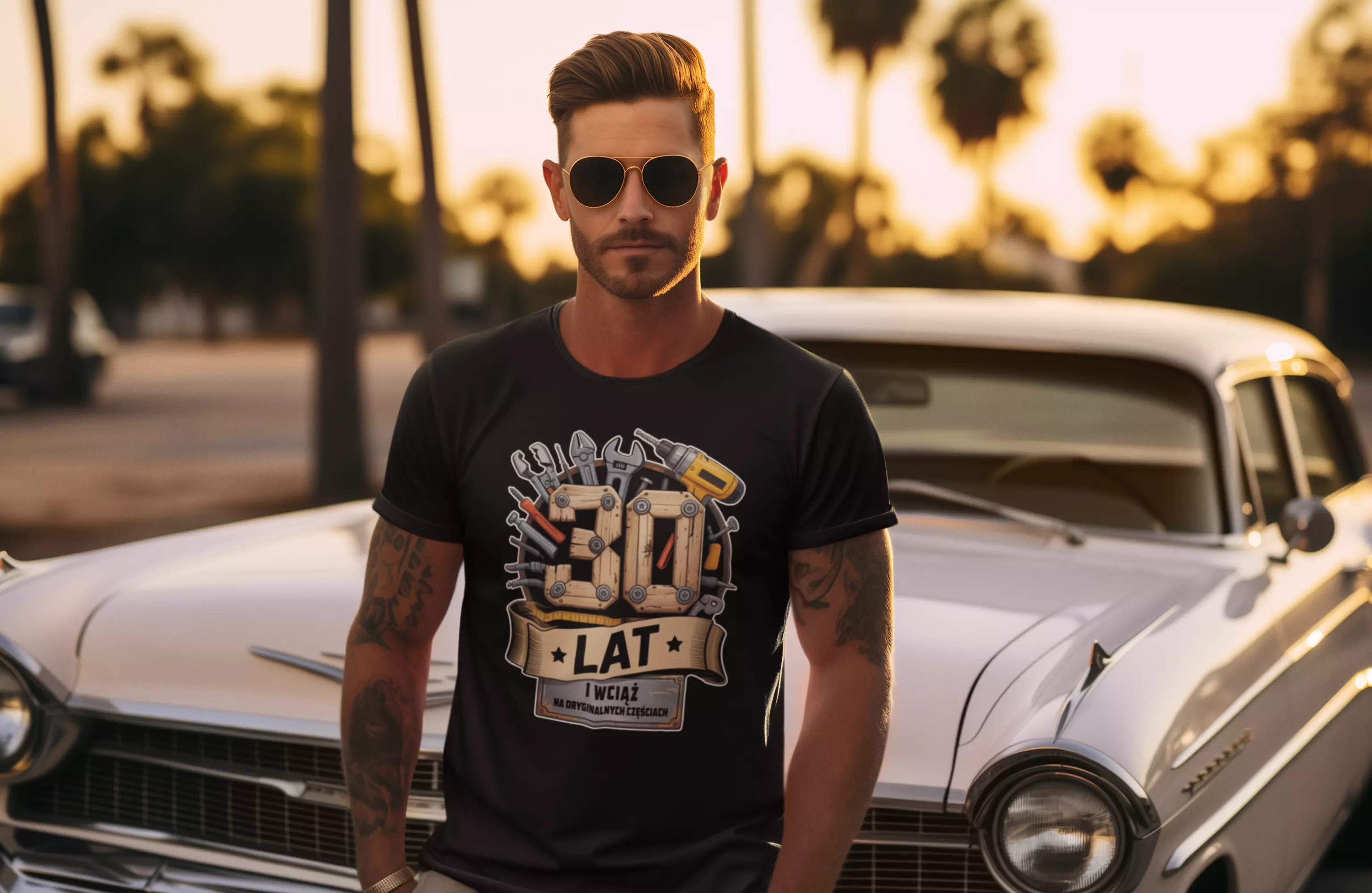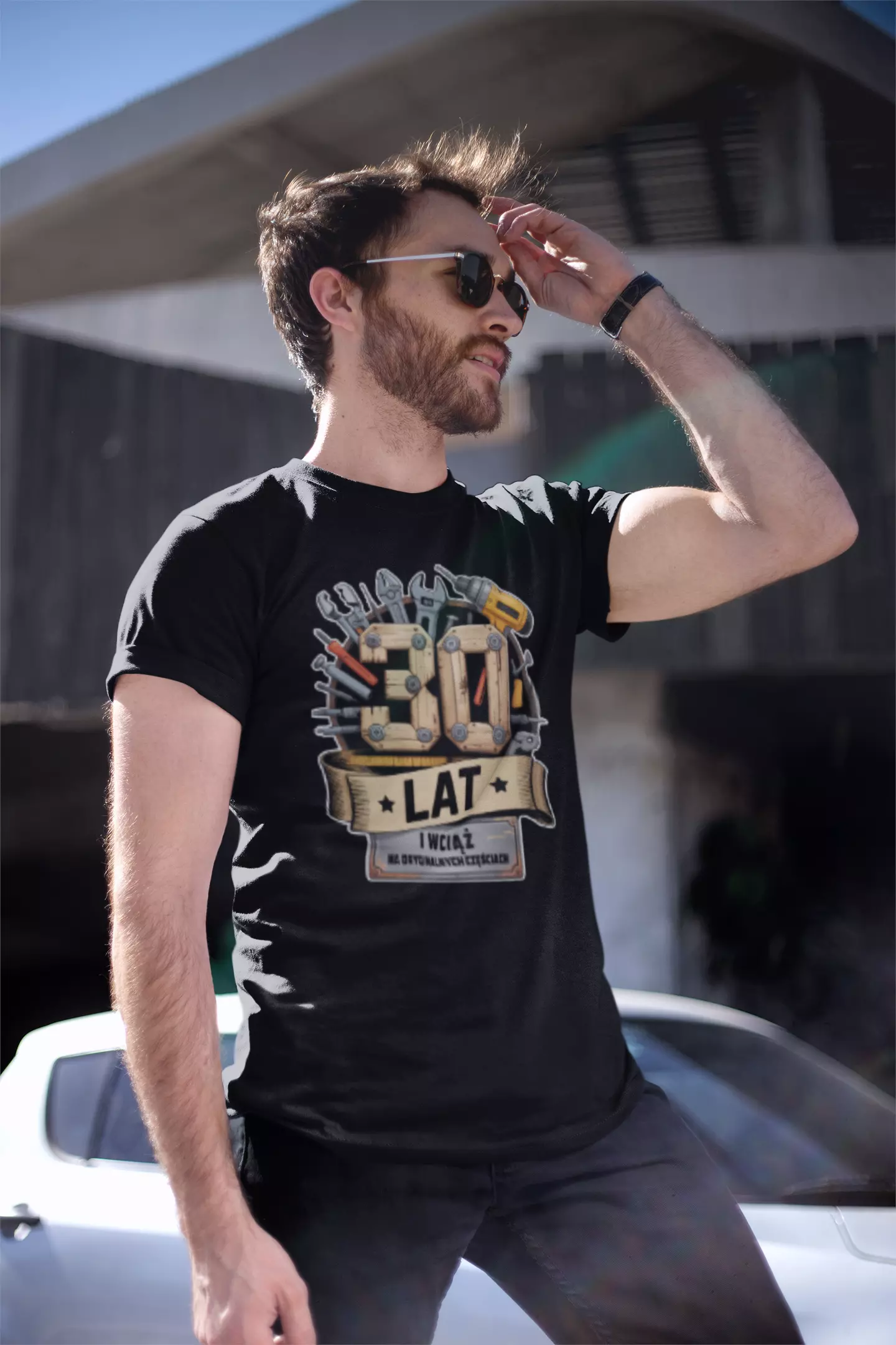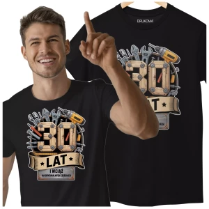 Koszulka na 30 TRZYDZIESTE urodziny z napisem: "30 LAT i wciąż na oryginalnych częściach" kolor czarny