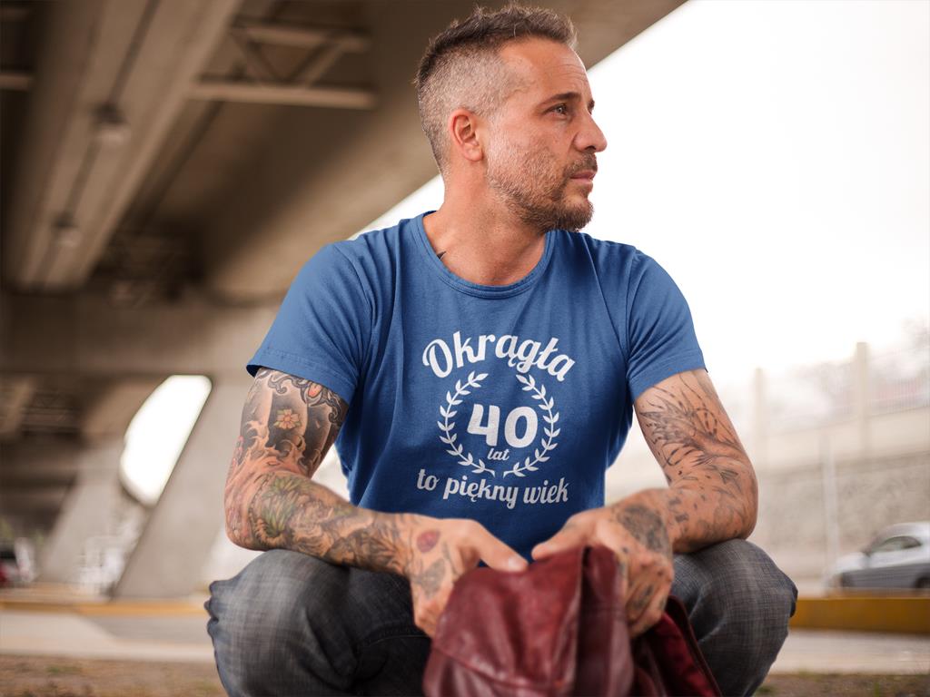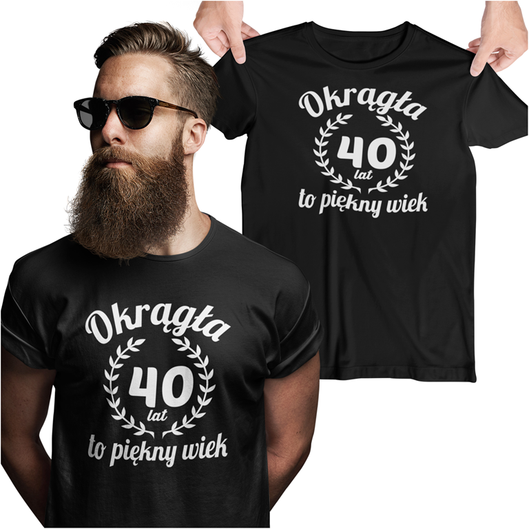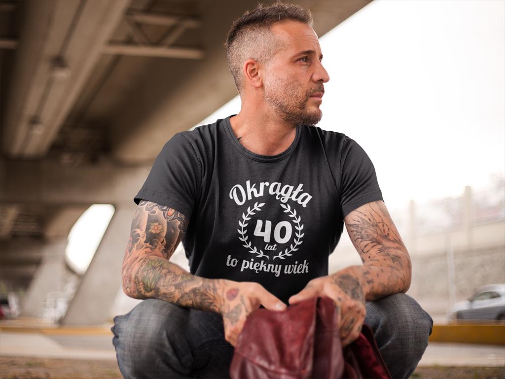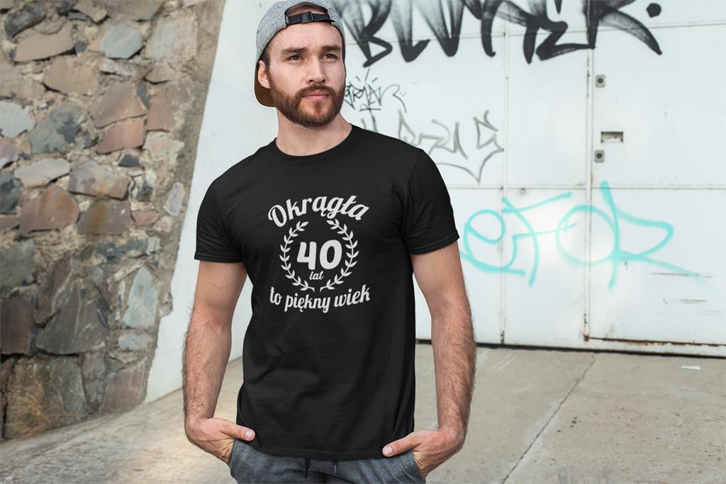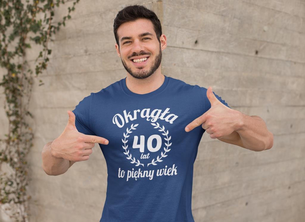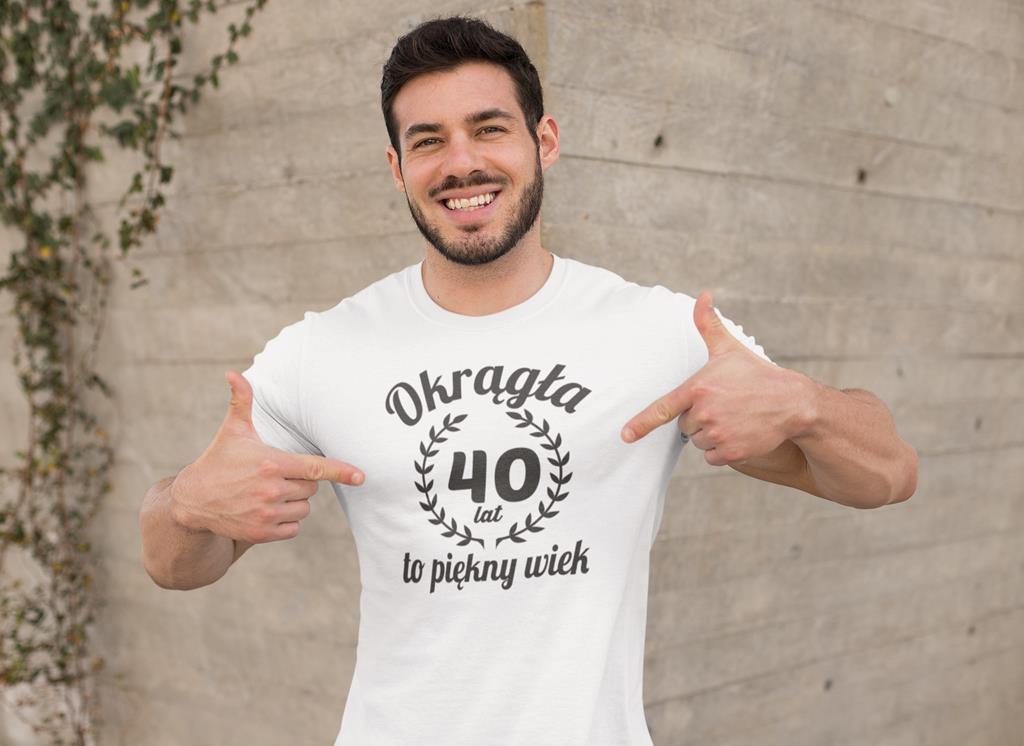 Koszulka na 40 czterdzieste urodziny z napisem Okrągła 40 lat to piękny wiek