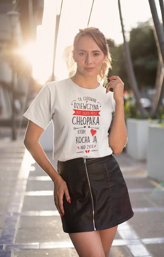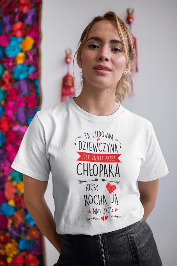 Koszulka na Dzień Kobiet z nadrukiem Ta cudowna dziewczyna jest zajęta przez chłopaka który kocha ja nad życie
