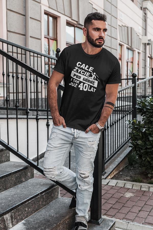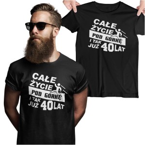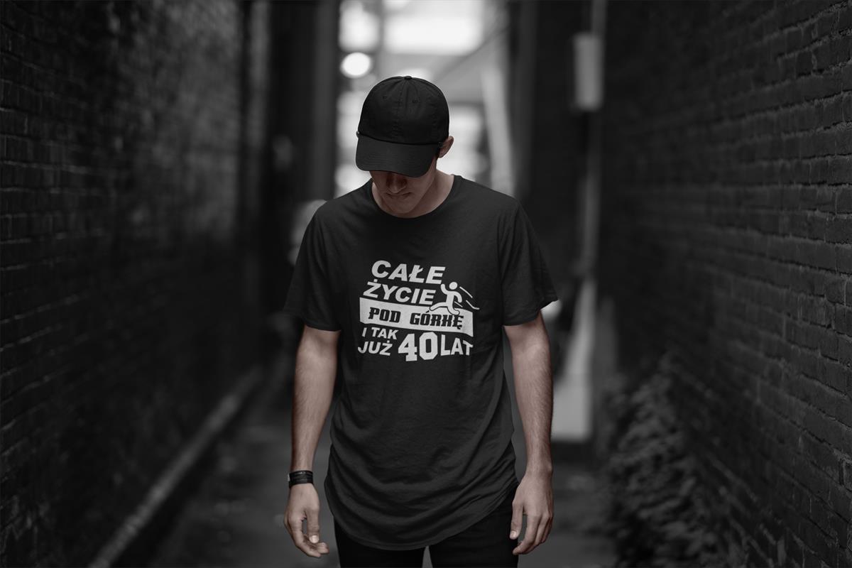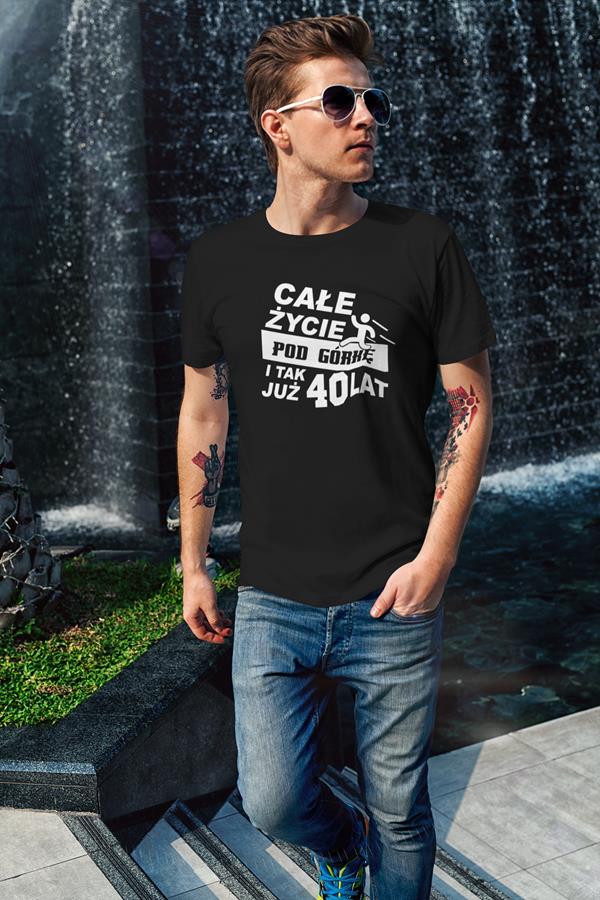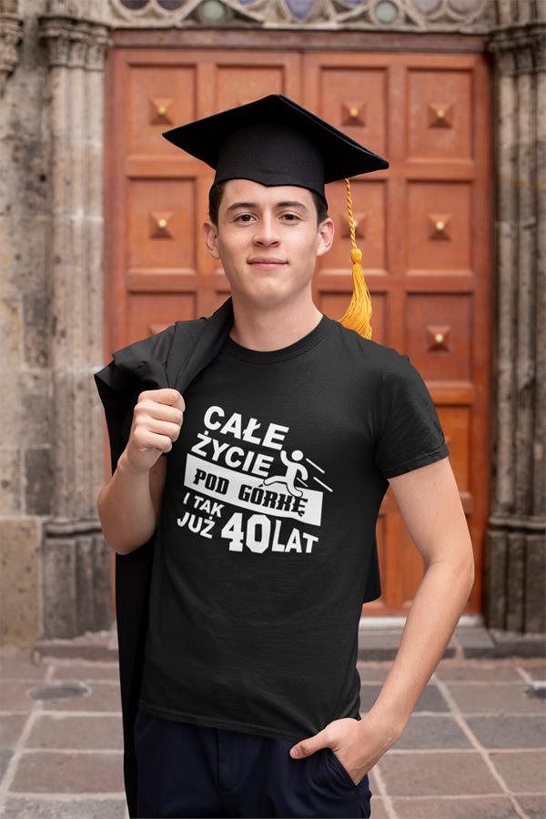 Koszulka na urodziny na 40 czterdziestkę z nadrukiem Całe życie pod górkę i tak już 40 lat
