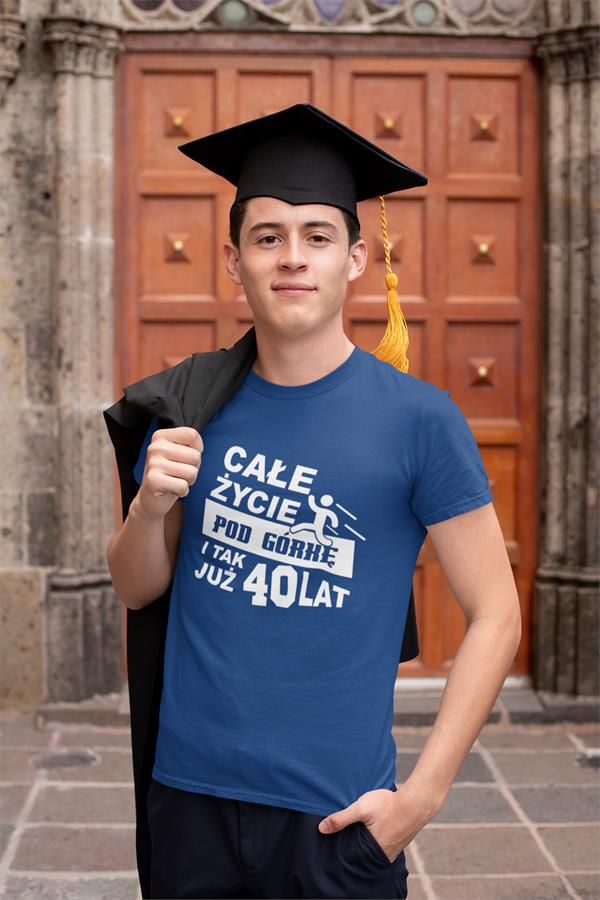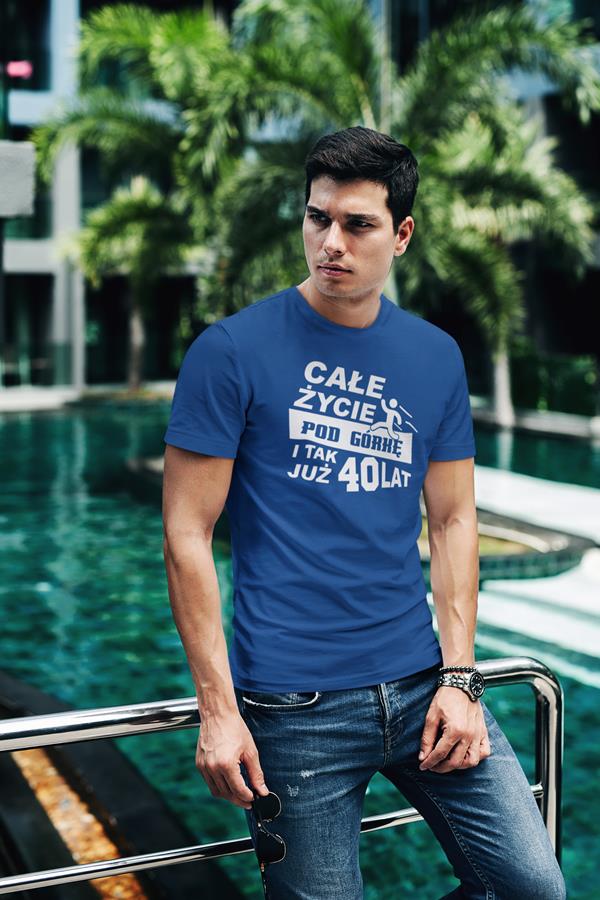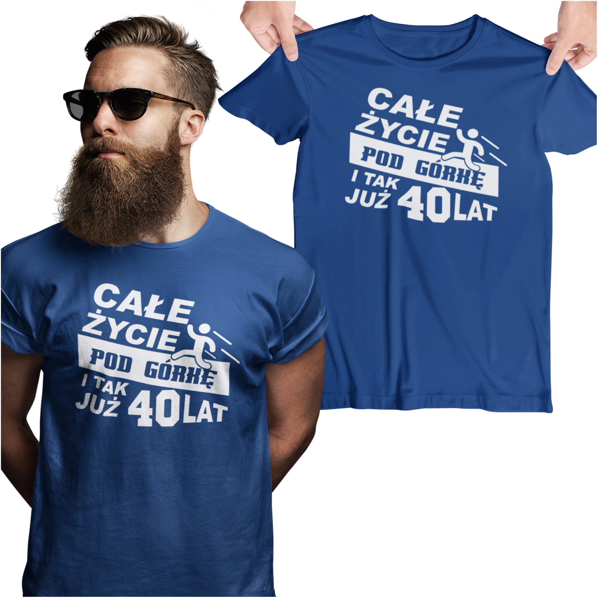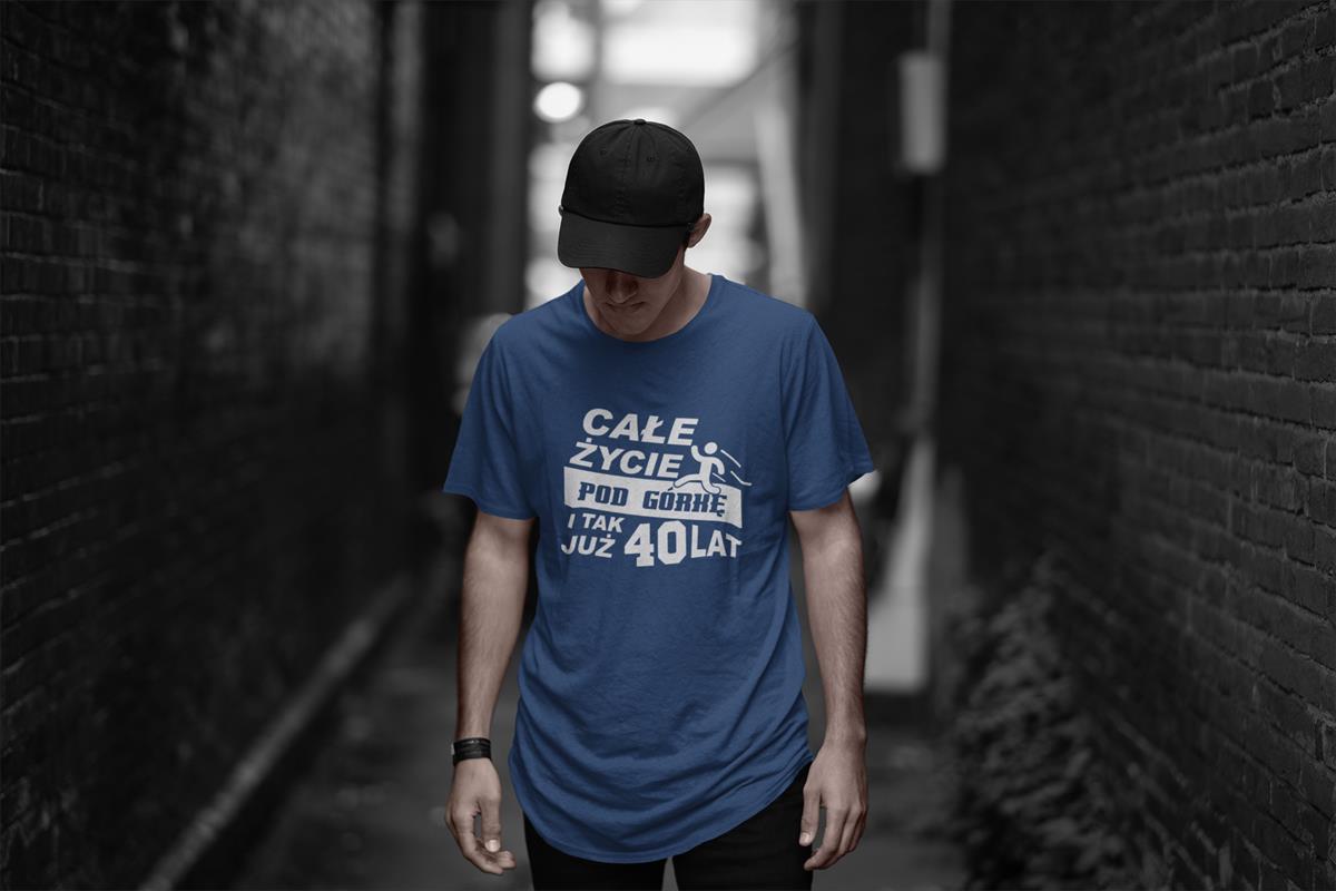Koszulka na urodziny na 40 czterdziestkę z nadrukiem Całe życie pod górkę i tak już 40 lat