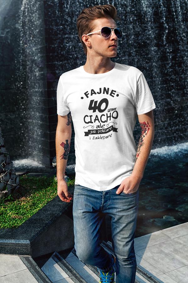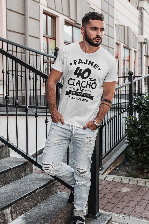 Koszulka na urodziny na 40 czterdziestkę z nadrukiem Fajne 40 letnie ciacho ale już polizane i zaklepane