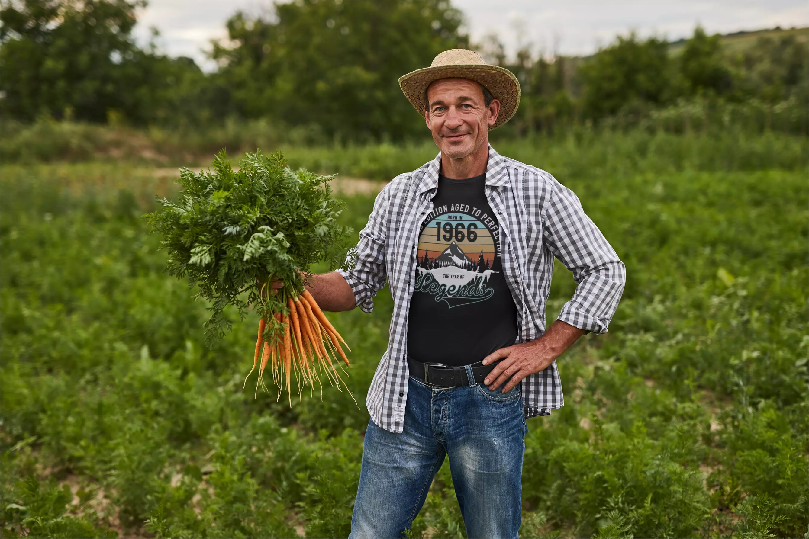 Koszulka na urodziny na 60 SZEŚĆDZIESIĄTKĘ z napisem: "LIMITED EDITION AGED TO PERFECTION BORN IN 1966 THE YEAR OF LEGENDS"