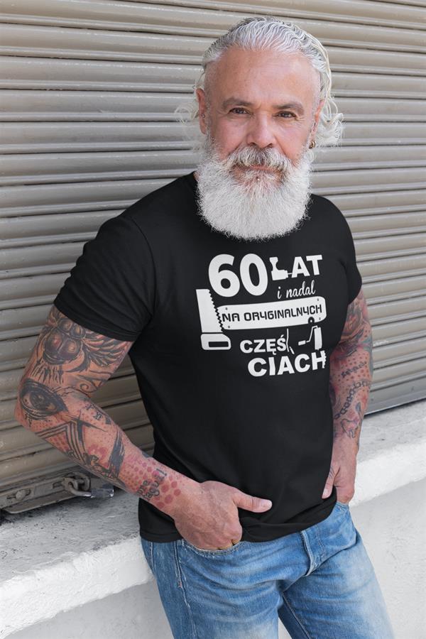 Koszulka na urodziny na 60 sześćdziesiątkę z nadrukiem 60 lat i nadal na oryginalnych częściach