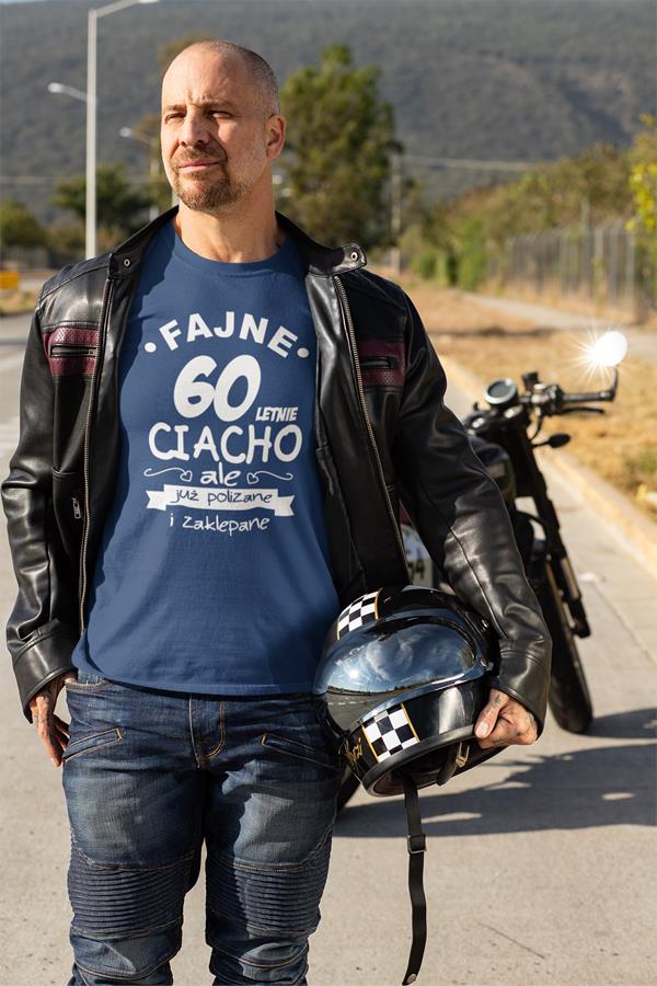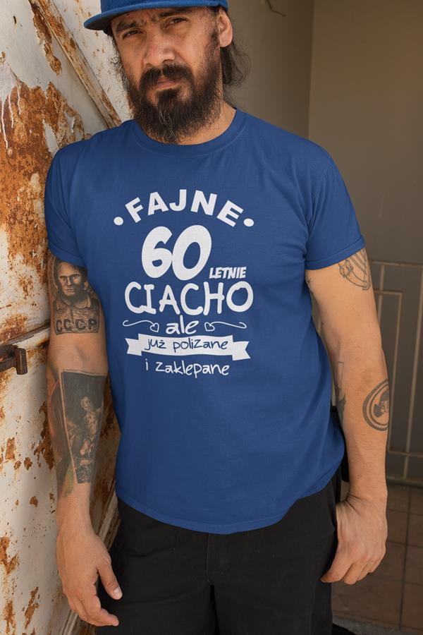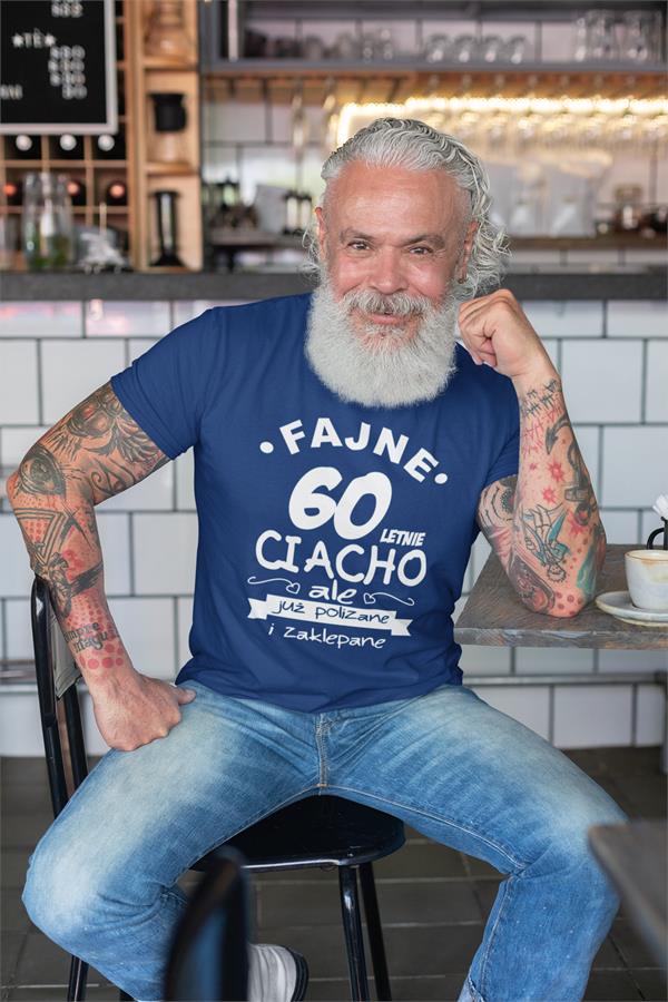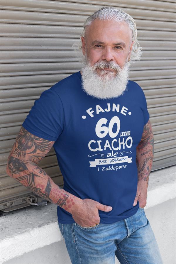 Koszulka na urodziny na 60 sześćdziesiątkę z nadrukiem Fajne 60 letnie ciacho ale już polizane i zaklepane