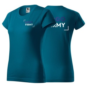 Koszulka petrol blue z krótkim rękawem z logo na sercu i plecach damska z nadrukiem logo firmy 160g BASIC134 kolor 93 koszulka krótki rękaw