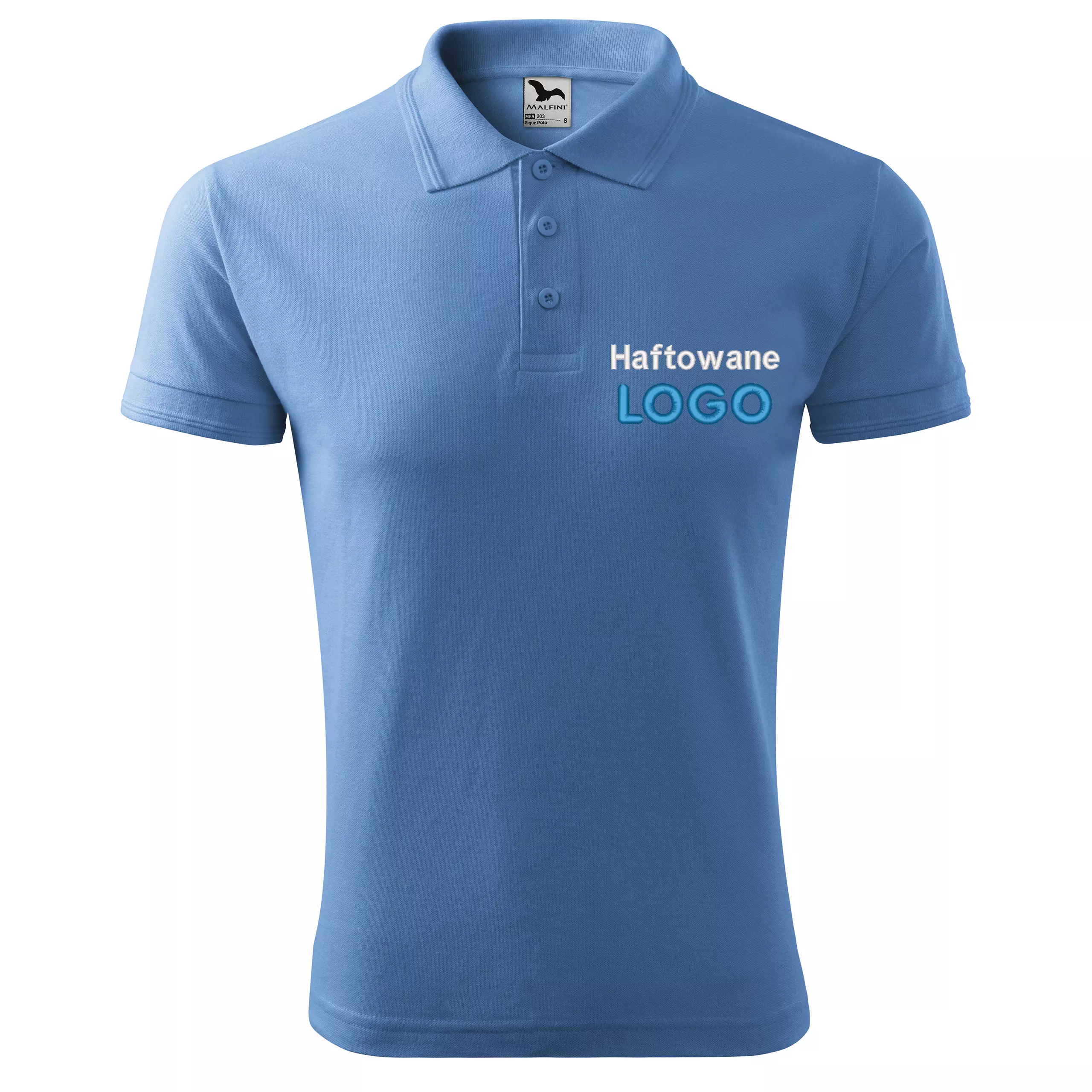 Koszulka polo BŁĘKITNA z logo na sercu męska z HAFTEM logo firmy 200g 203 kolor 15 koszulka polo