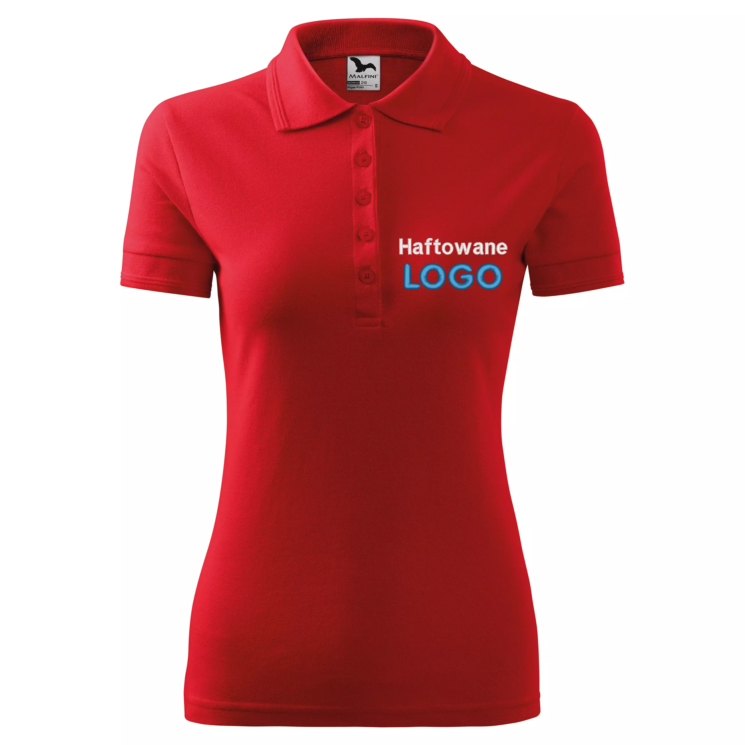 Koszulka polo CZERWONA z logo na sercu damska z haftem logo firmy 200g 210 kolor 07 koszulka polo