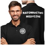 Koszulka polo męska medyczna dla ratownictwa medycznego z logo i napisem ratownictwo medyczne na plecach kolor czarny