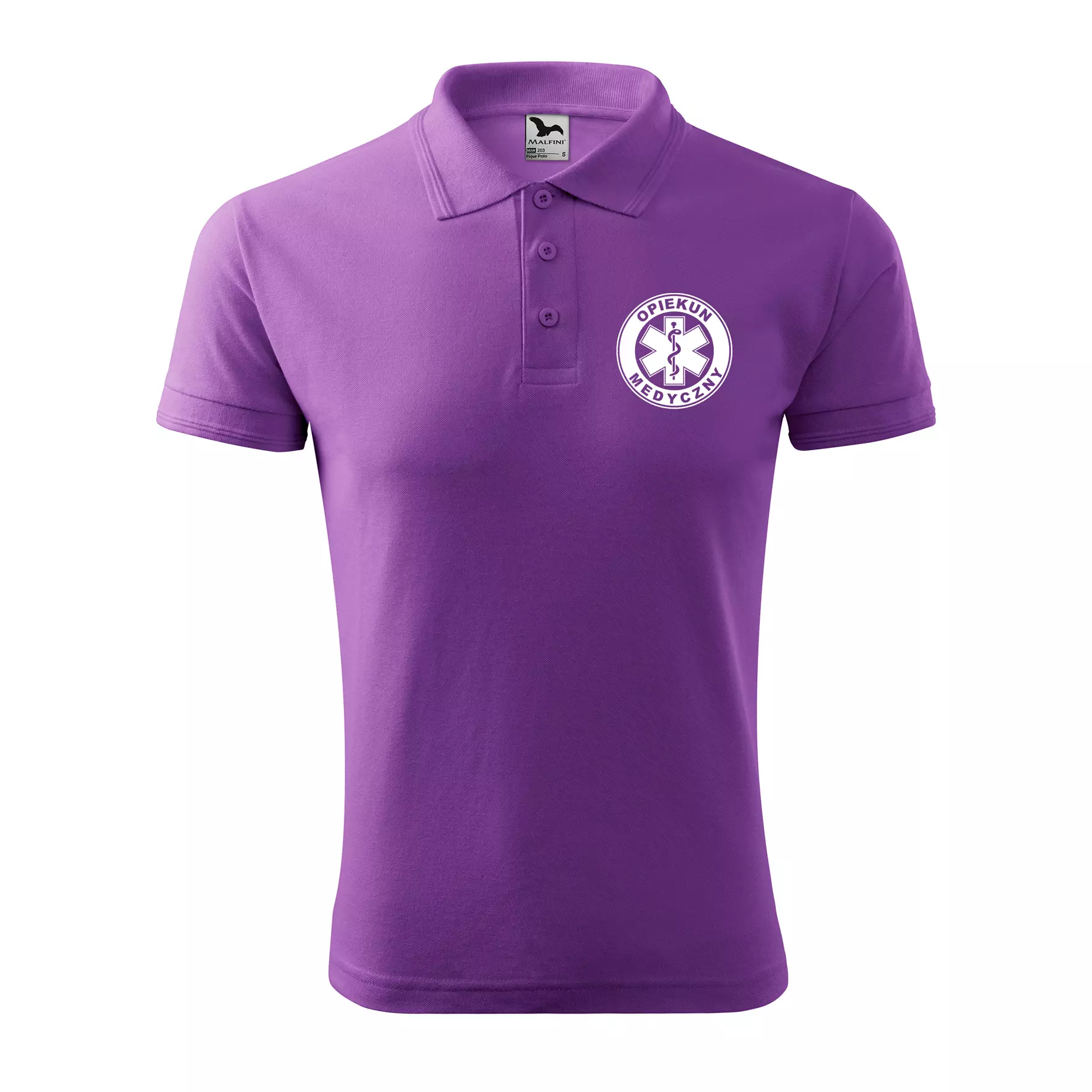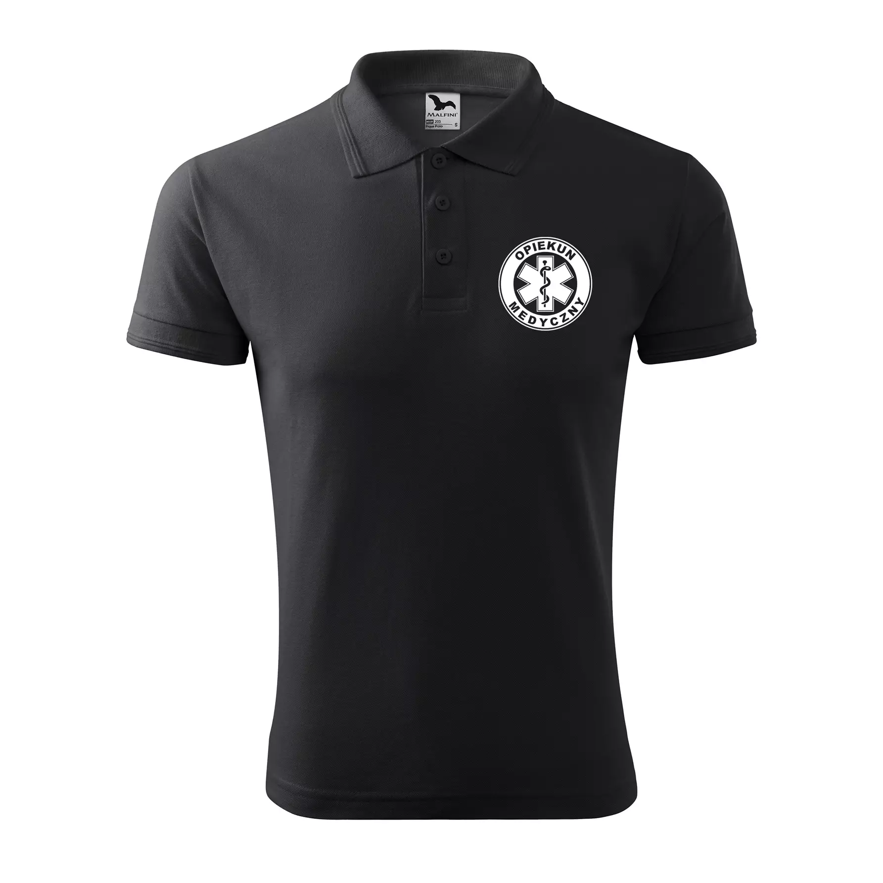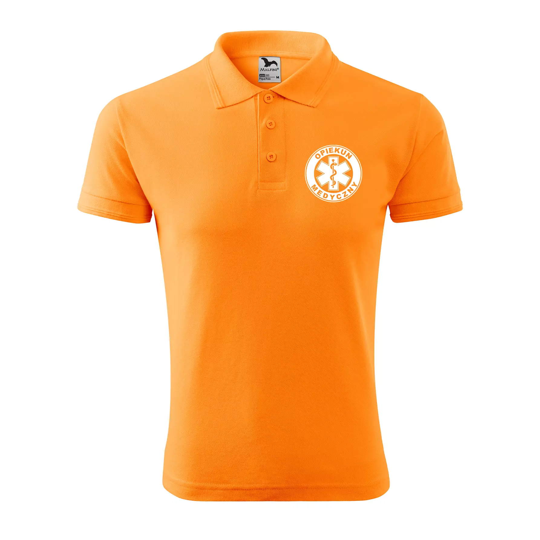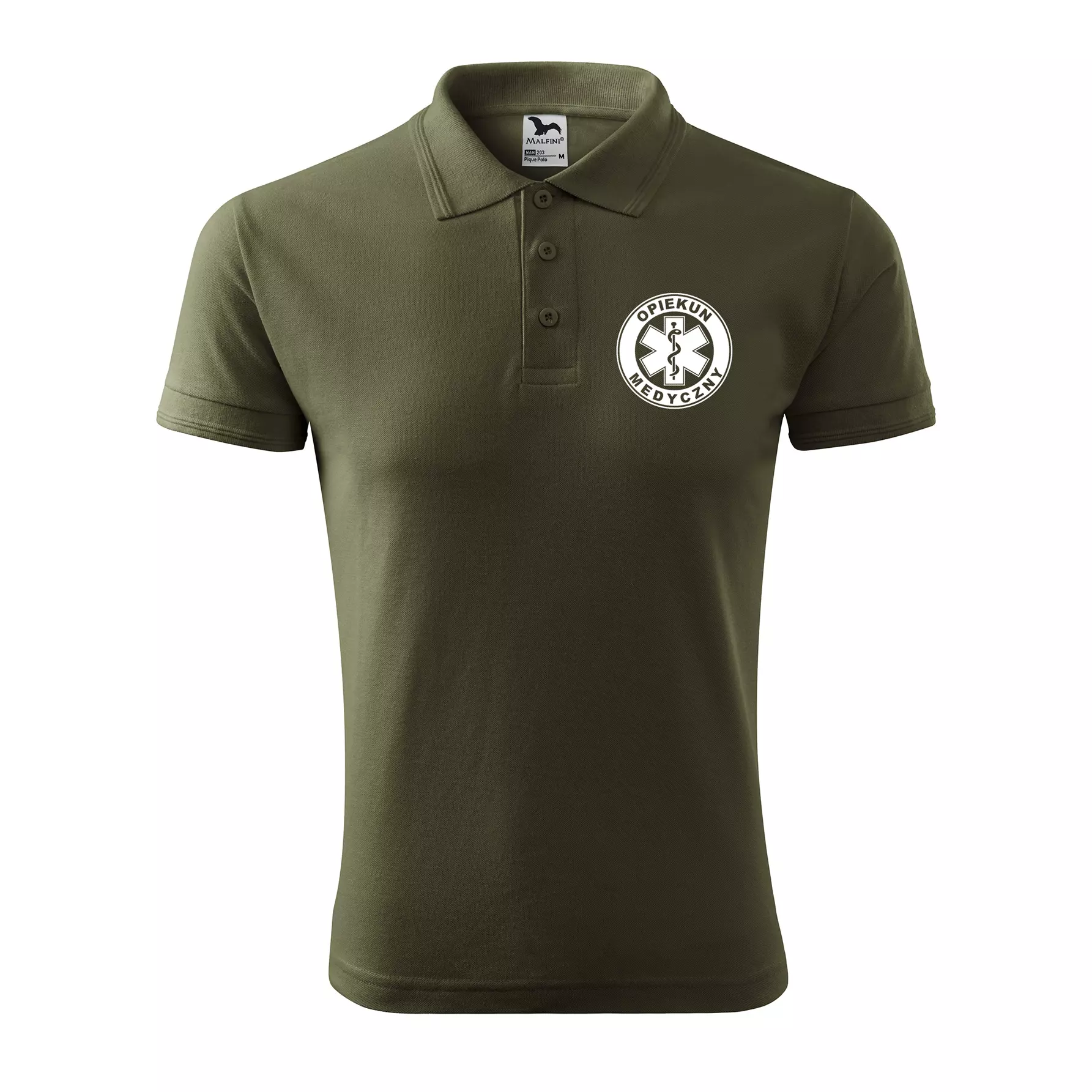 Koszulka polo męska z logo na sercu i plecach z nadrukiem OPIEKUN MEDYCZNY 200g Pique Polo 203 koszulka polo WSZYSTKIE KOLORY