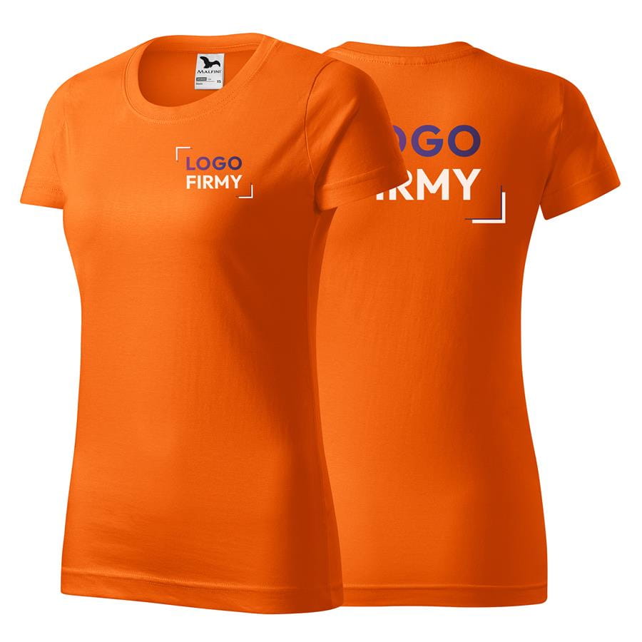 Koszulka pomarańczowa z krótkim rękawem z logo na sercu i plecach damska z haftem nadrukiem logo firmy 160g BASIC134 kolor 11 koszulka krótki rękaw