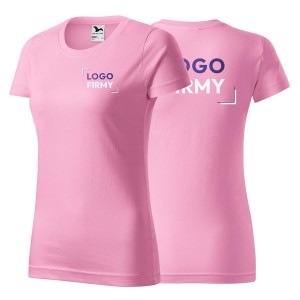 Koszulka różowa z krótkim rękawem z logo na sercu i plecach damska z nadrukiem logo firmy 160g BASIC134 kolor 30 koszulka krótki rękaw