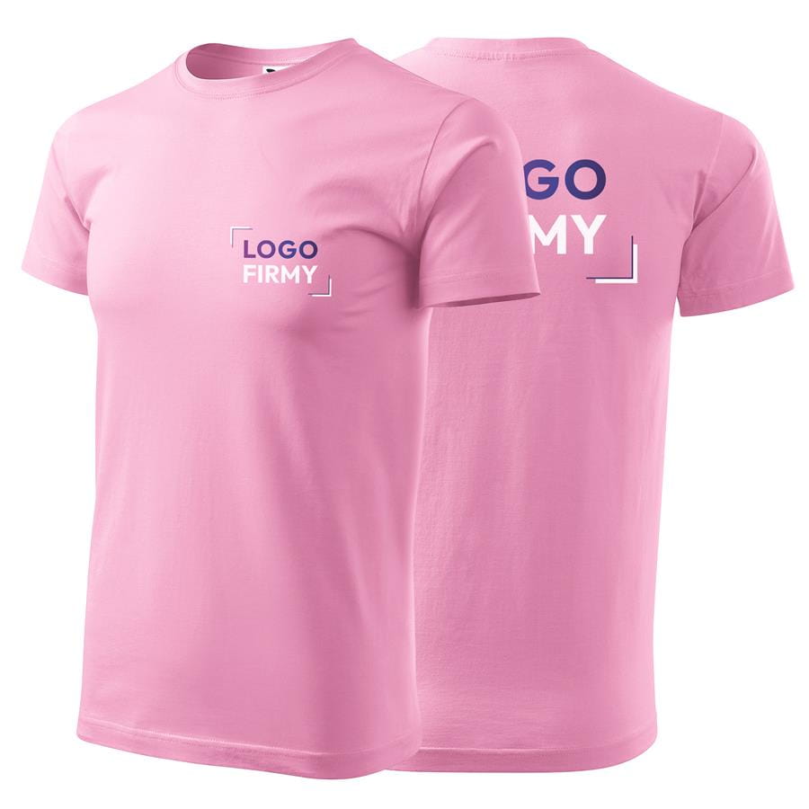 Koszulka różowa z krótkim rękawem z logo na sercu i plecach męska z nadrukiem logo firmy 160g BASIC129 kolor 30 koszulka krótki rękaw