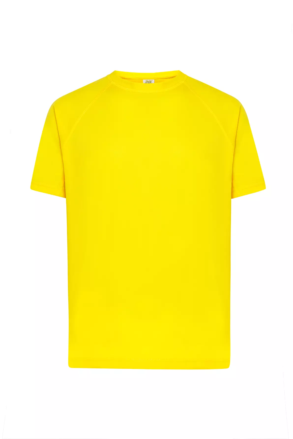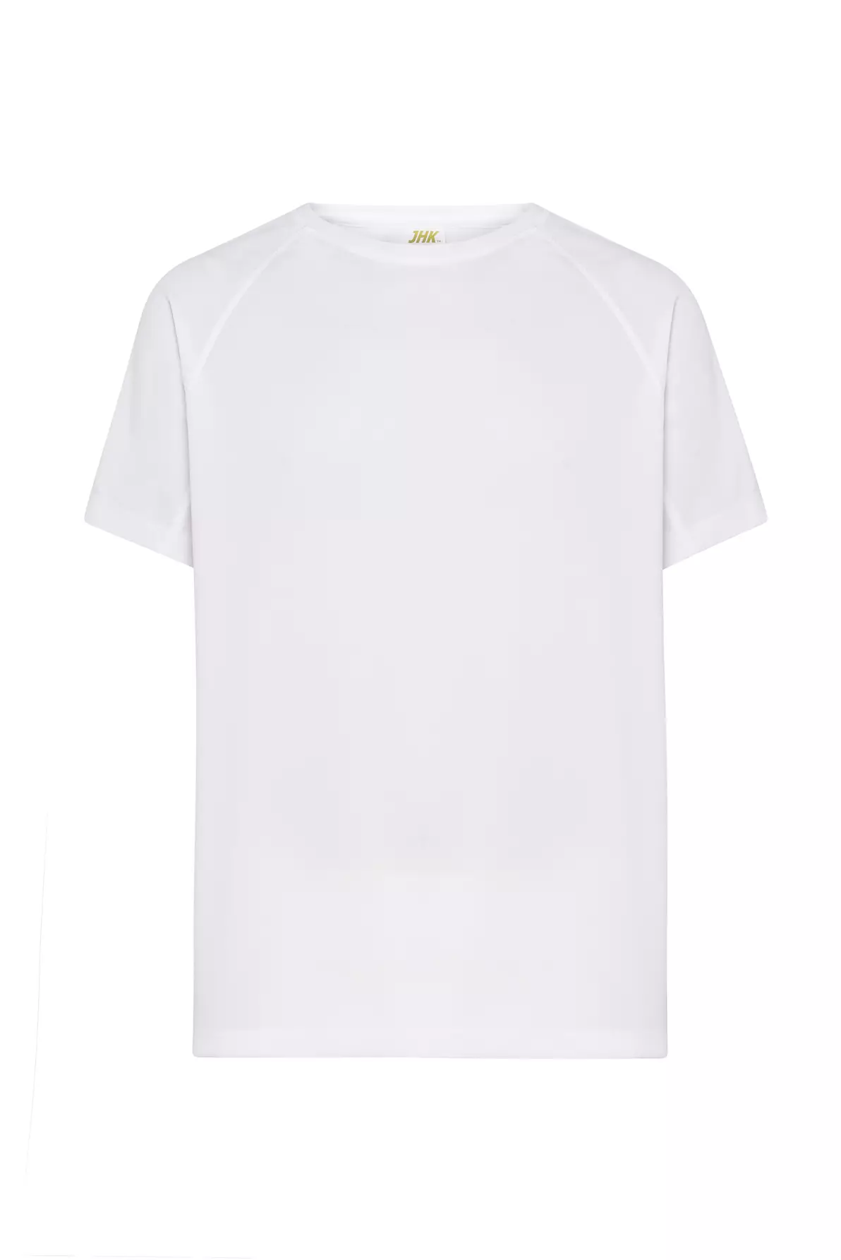 Sportowy t-shirt męski JHK Sport Man to lekka koszulka o gramaturze 130 g/m², wykonana w 100% z poliestru pochodzącego z recyklingu, co czyni ją wyborem przyjaznym dla środowiska. Model ten został zaprojektowany z myślą o aktywności fizycznej, posiada krótkie rękawy raglanowe zapewniające pełną swobodę ruchów oraz dekoracyjne, płaskie szwy, które minimalizują ryzyko otarć. Wyjątkowym atutem jest zdejmowalna etykieta, która ułatwia pełną personalizację produktu. Dzięki swoim właściwościom materiał idealnie nadaje się do uprawiania sportu oraz pod profesjonalne znakowanie.