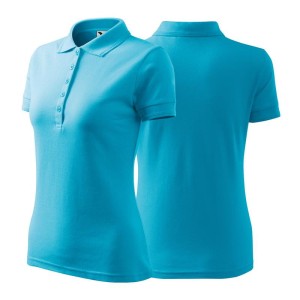 Koszulka turkusowa polo z logo na sercu damska z nadrukiem logo firmy 200g 210 kolor 44 koszulka polo