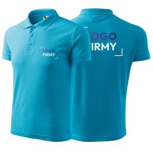 Koszulka turkusowa polo z logo na sercu i plecach męska z nadrukiem logo firmy 200g 203 kolor 44 koszulka polo