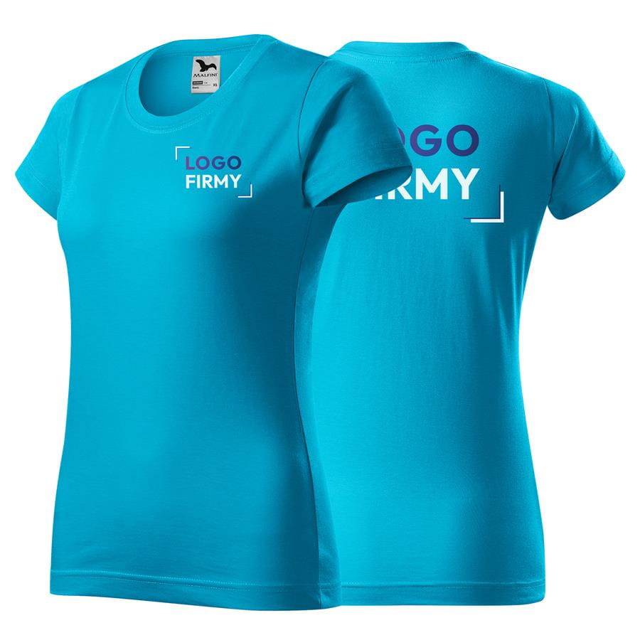 Koszulka turkusowa z krótkim rękawem z logo na sercu i plecach damska z nadrukiem logo firmy 160g BASIC134 kolor 44 koszulka krótki rękaw