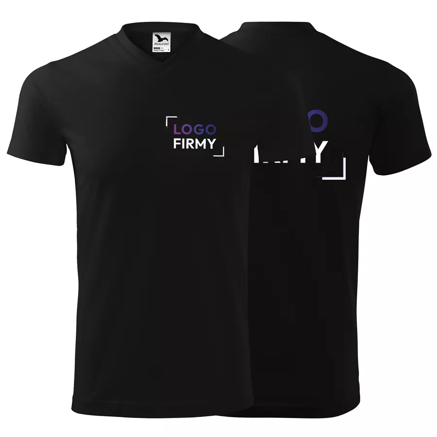 Koszulka unisex 200gy Heavy V-neck 111 z logo własnym nadrukiem na sercu i plecach odzież reklamowa WSZYSTKIE KOLORY