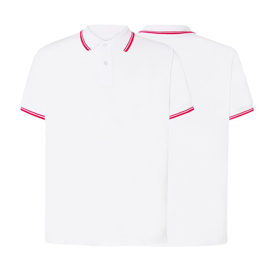 Koszulka white/red polo z logo na sercu i plecach męska z nadrukiem logo firmy 200g PORA 210 kolor koszulka polo