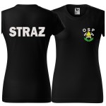Koszulka CZARNA z krótkim rękawem z logo na sercu i plecach damska z HAFTEM logo OSP 160g BASIC134 koszulka krótki rękaw