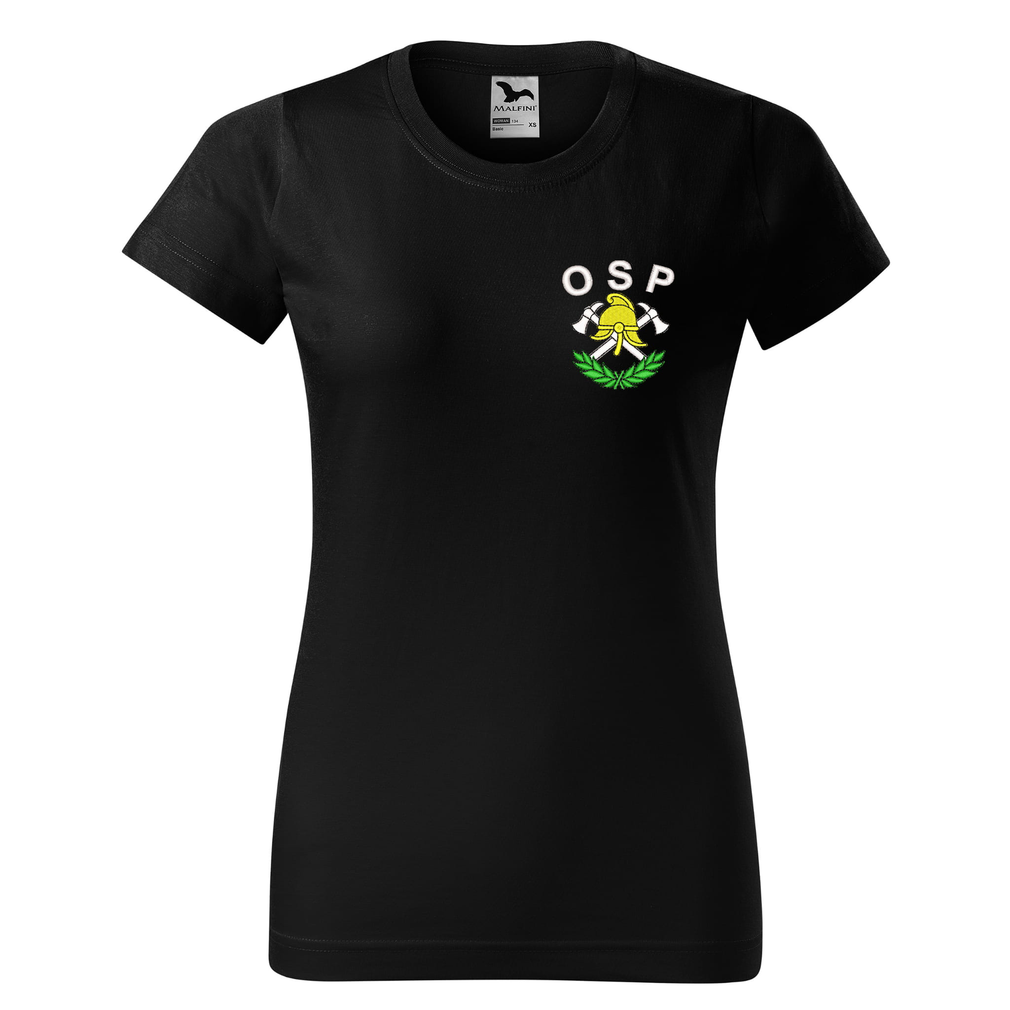 Koszulka z krótkim rękawem z logo na sercu i plecach damska z HAFTEM logo OSP 160g BASIC134 koszulka krótki rękaw kolor czarny