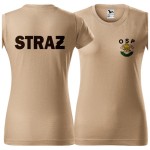 Koszulka PIASKOWA z krótkim rękawem z logo na sercu i plecach damska z HAFTEM logo OSP 160g BASIC134 koszulka krótki rękaw.