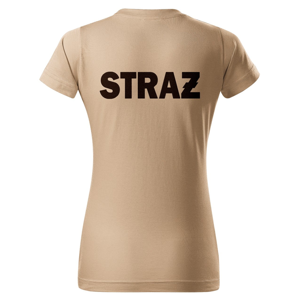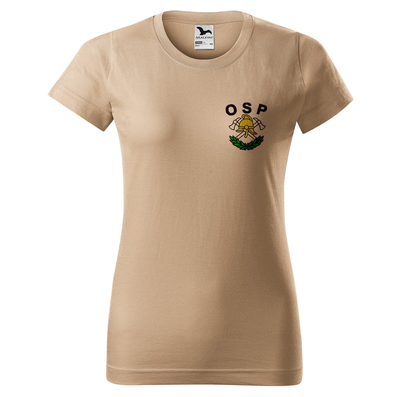 Koszulka z krótkim rękawem z logo na sercu i plecach damska z HAFTEM logo OSP 160g BASIC134 koszulka krótki rękaw kolor piaskowy