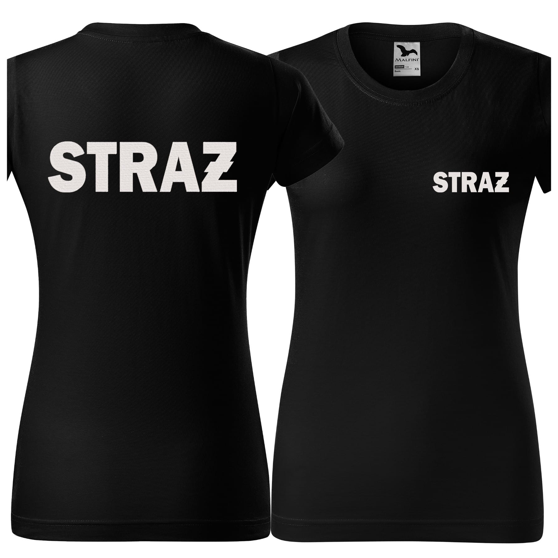 Koszulka CZARNA z krótkim rękawem z logo na sercu i plecach damska z HAFTEM napisem straż 160g BASIC129 koszulka krótki rękaw.