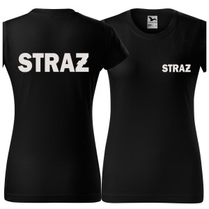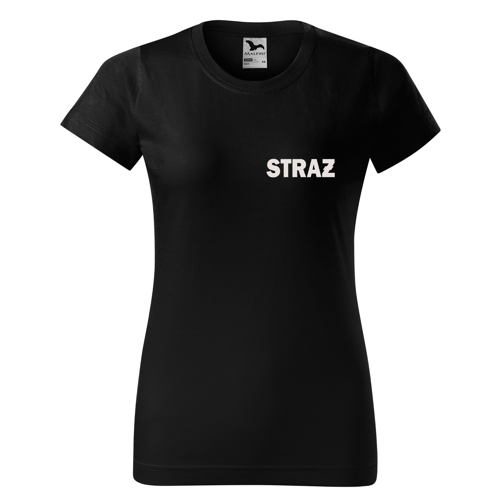 Koszulka z krótkim rękawem z logo na sercu i plecach damska z HAFTEM napisem straż 160g BASIC129 koszulka krótki rękaw kolor czarny