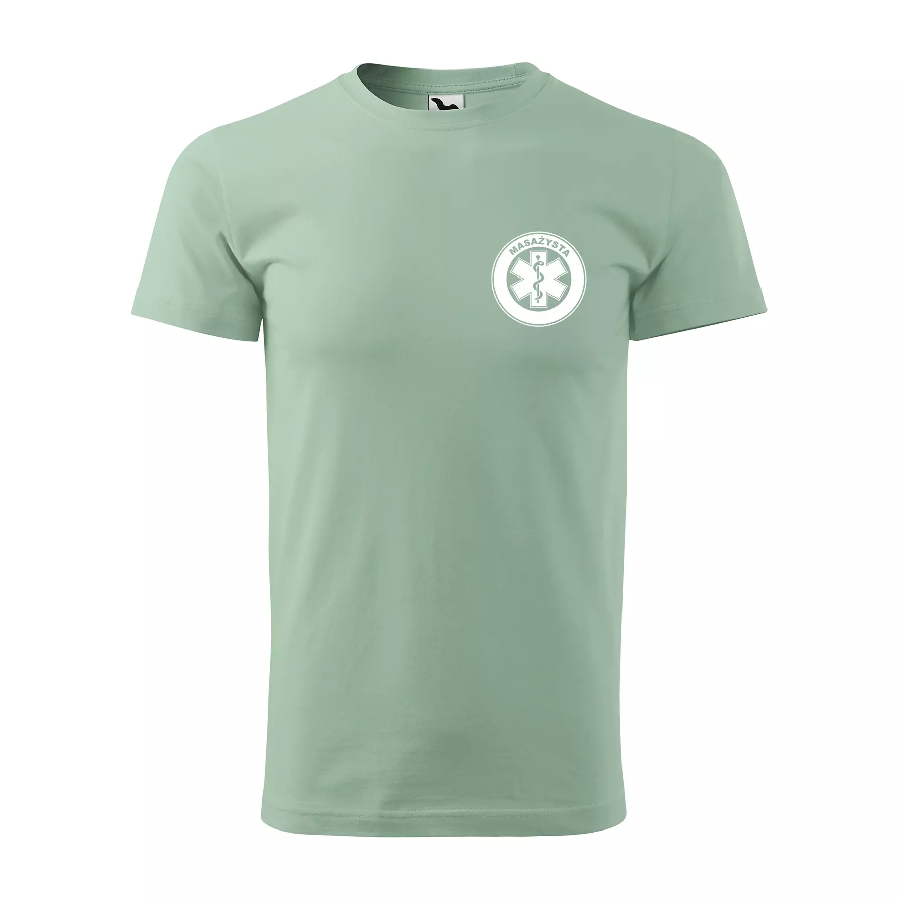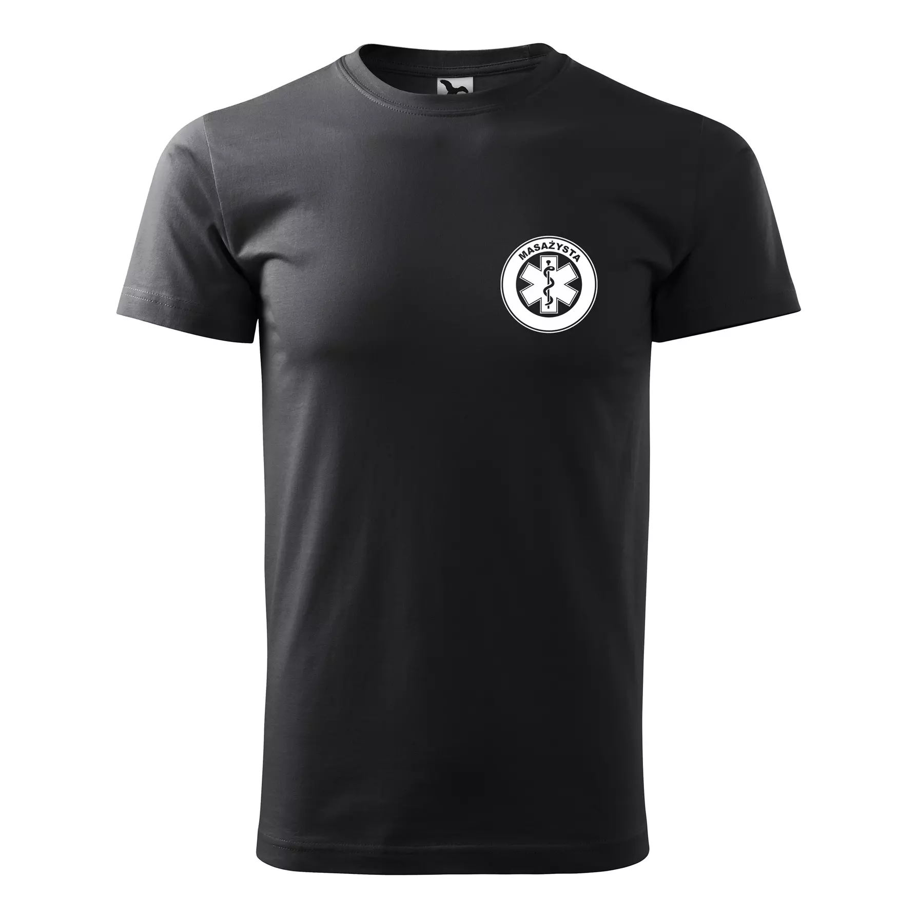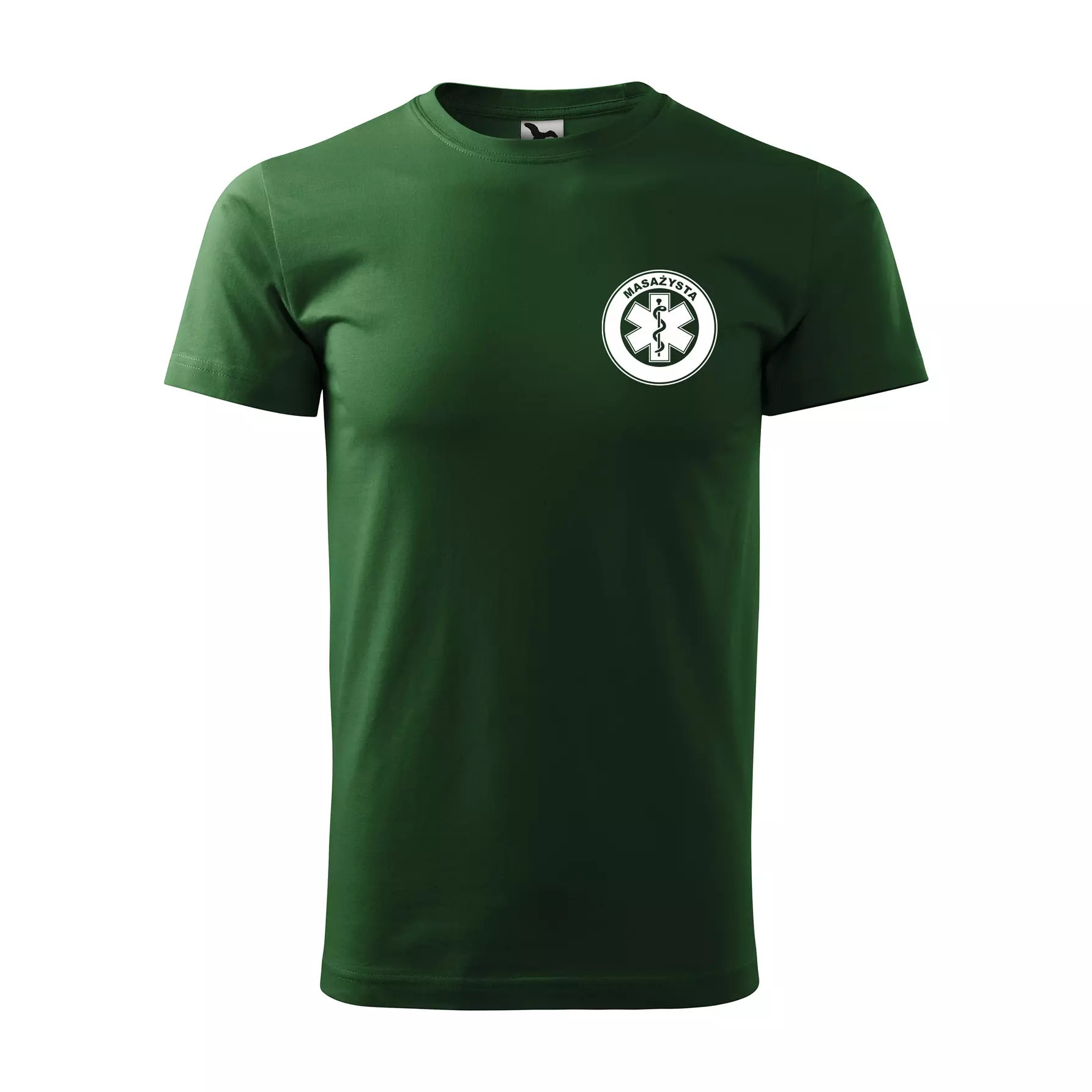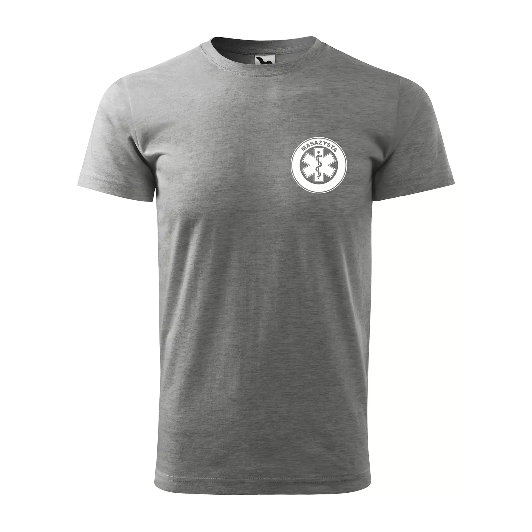 Koszulka z krótkim rękawem z logo na sercu i plecach męska z nadrukiem MASAŻYSTA 160g BASIC 129 koszulka krótki rękaw WSZYSTKIE KOLORY