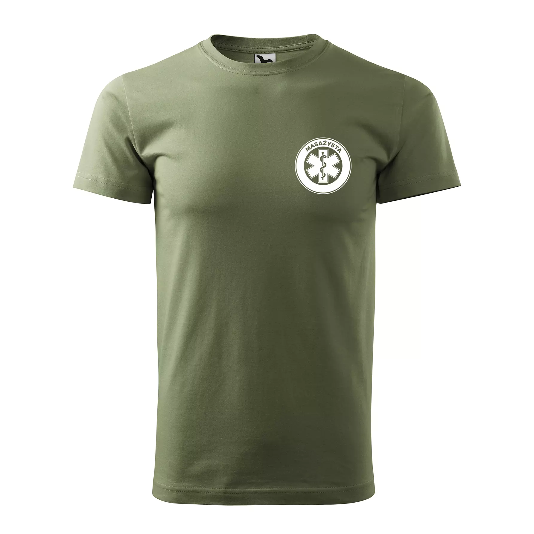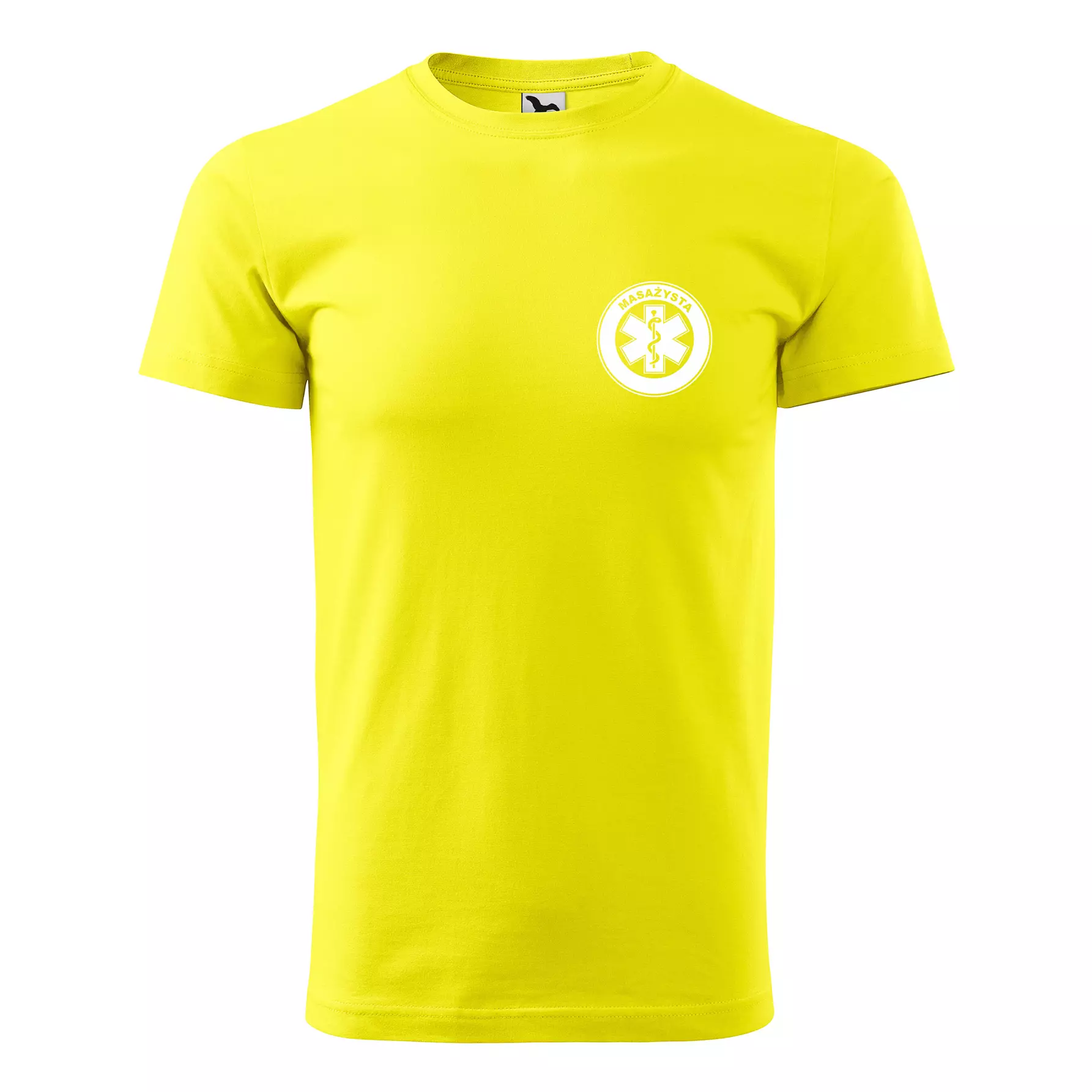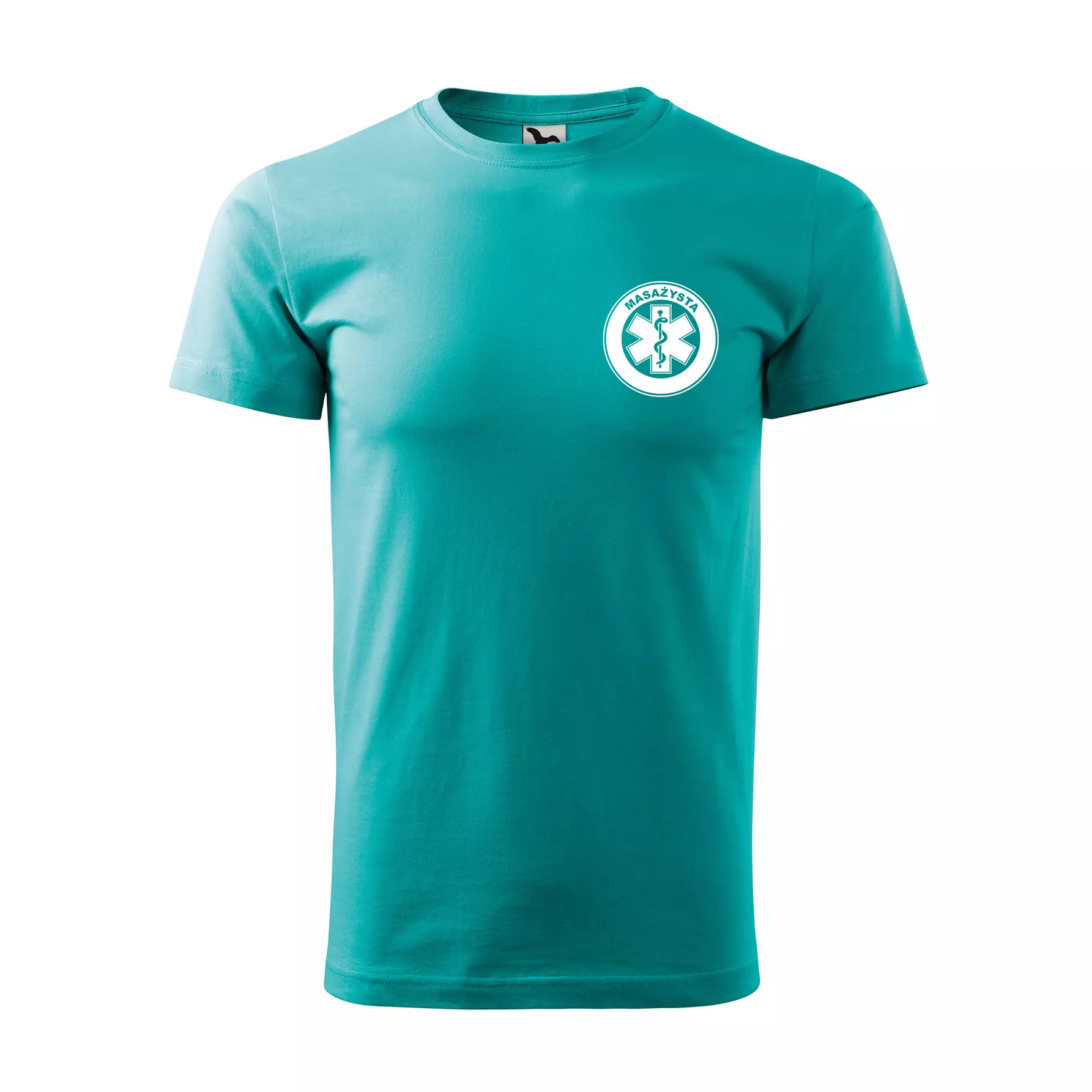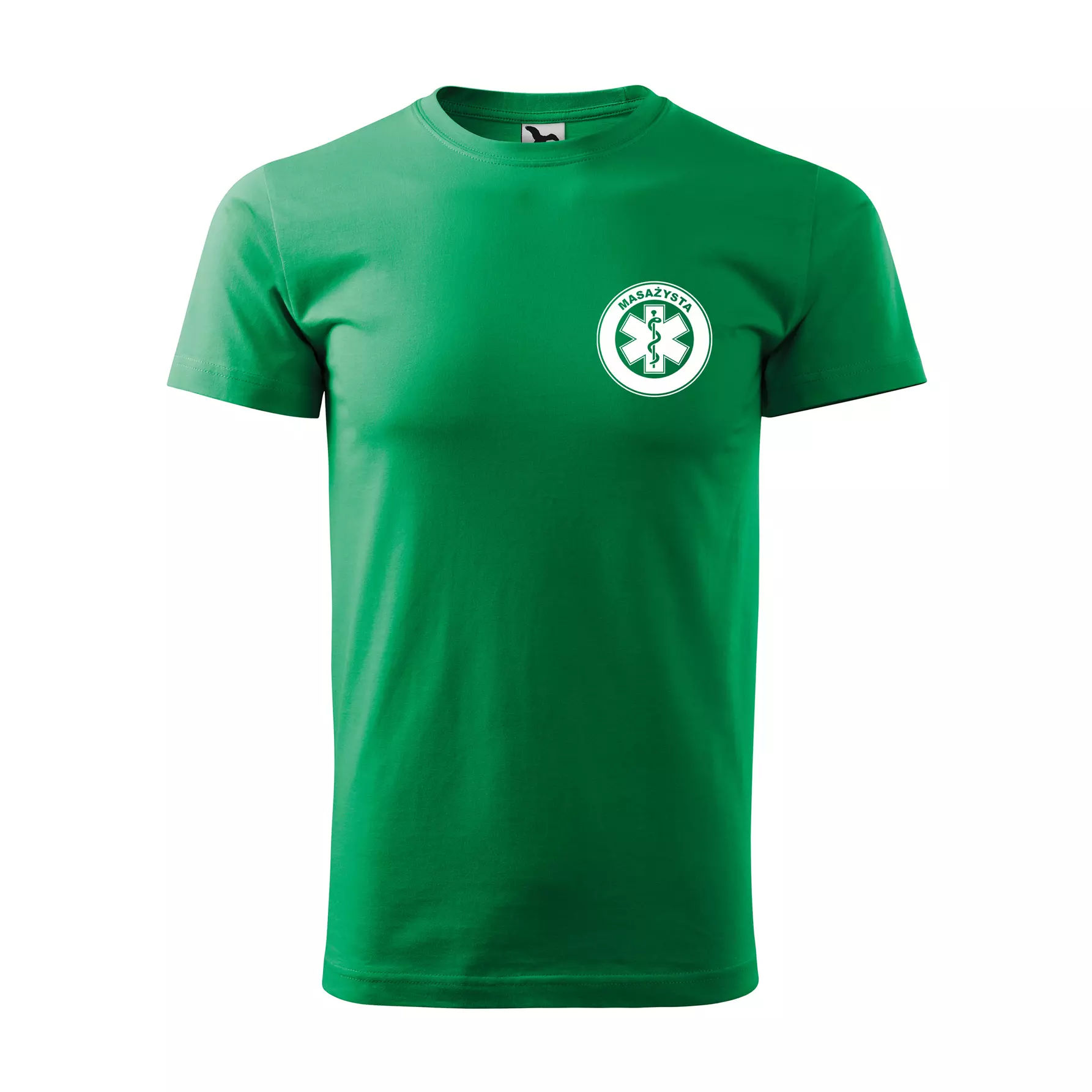 Koszulka z krótkim rękawem z logo na sercu i plecach męska z nadrukiem MASAŻYSTA 160g BASIC 129 koszulka krótki rękaw WSZYSTKIE KOLORY