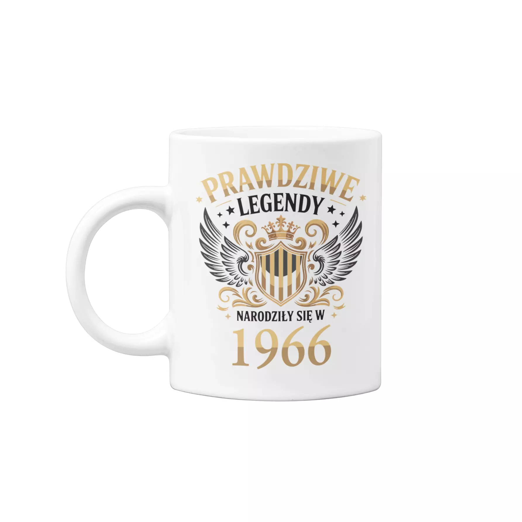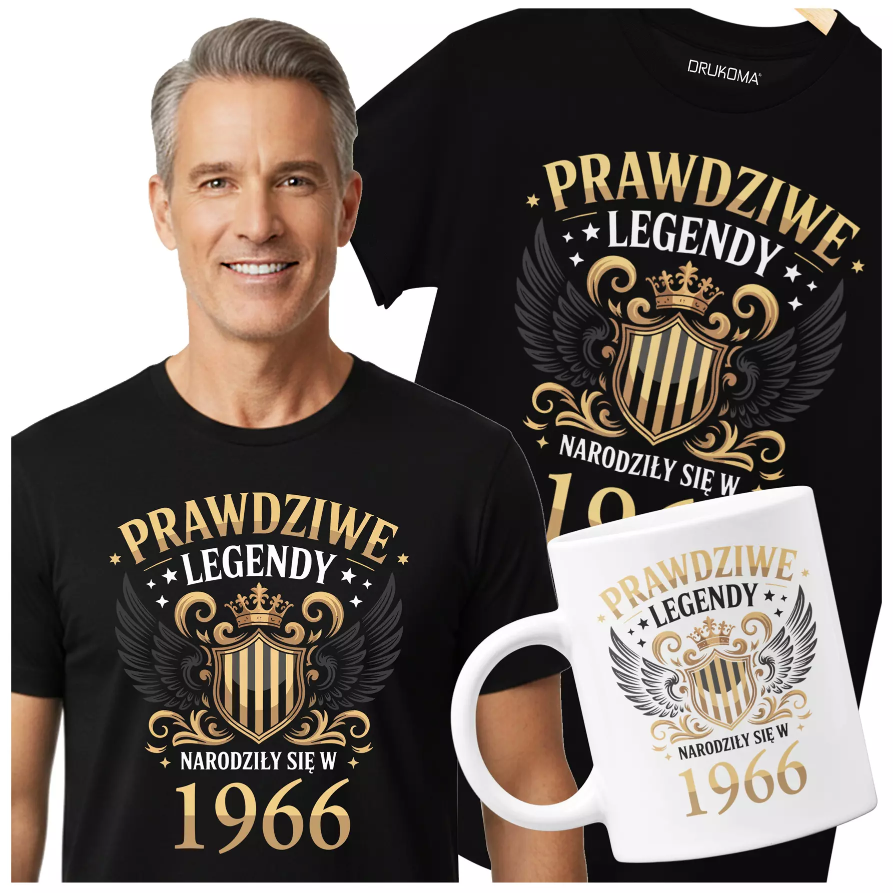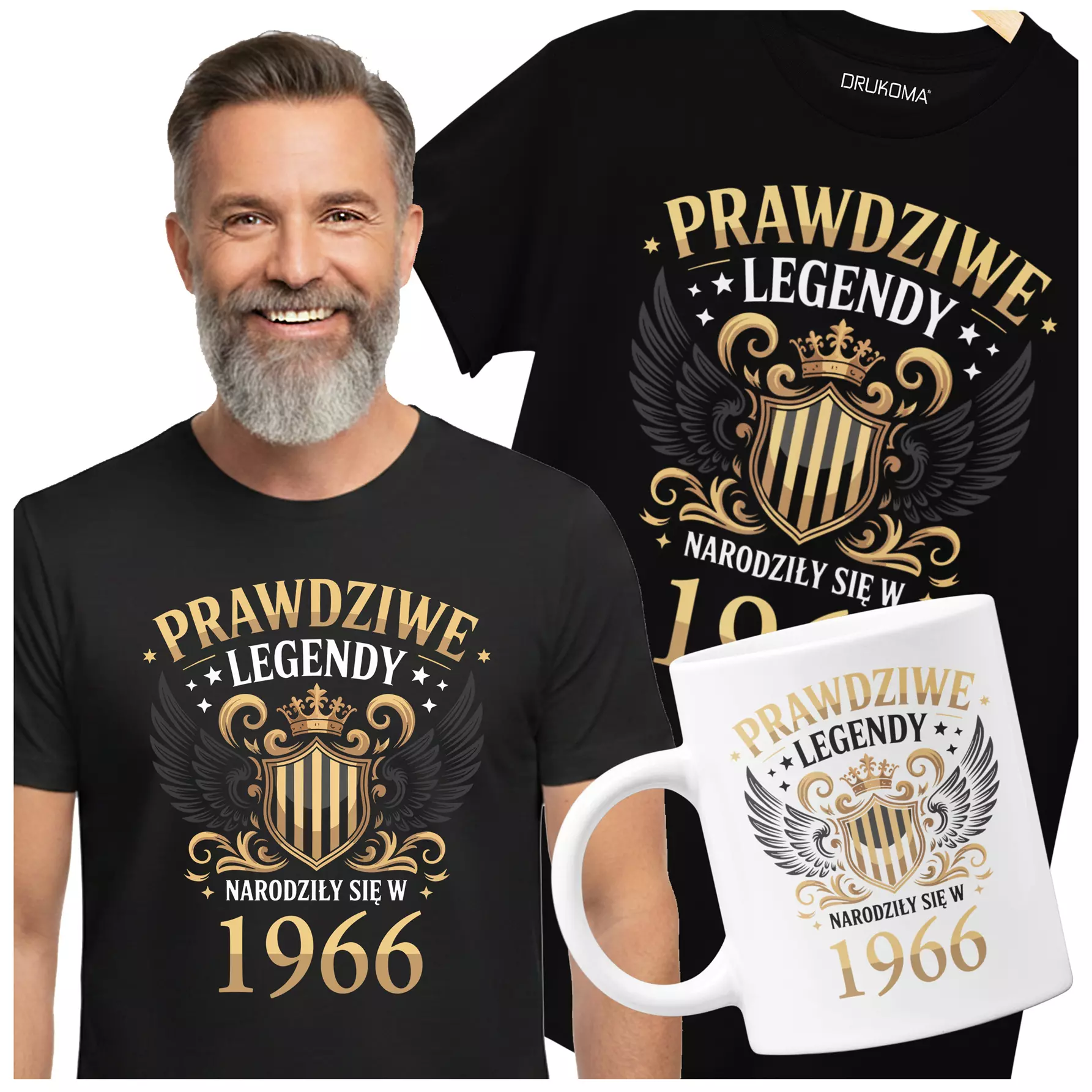 Koszulka z kubkiem na 60 lat urodziny sześćdziesiąte urodziny z napisem: "PRAWDZIWE LEGENDY NARODZIŁY SIĘ W 1966"