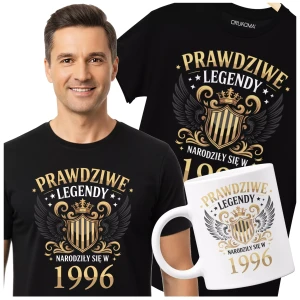 Koszulka z kubkiem na urodziny na 30 TRZYDZIESTKĘ z napisem: "PRAWDZIWE LEGENDY NARODZIŁY SIĘ W 1996"
