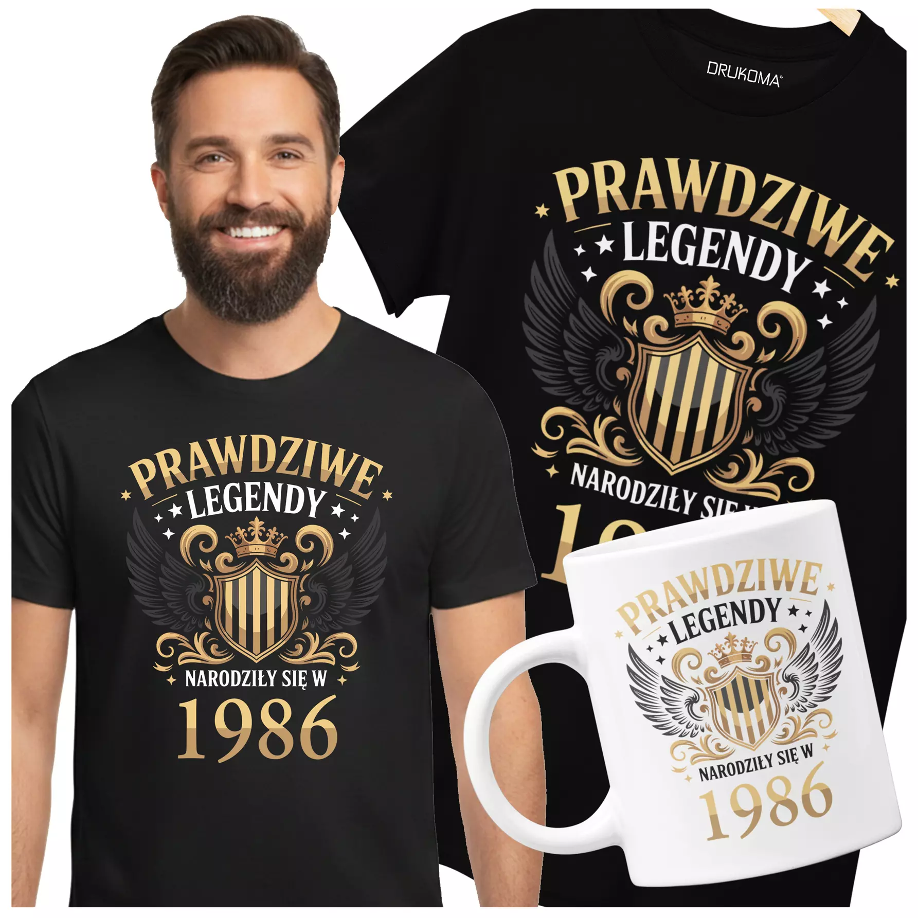 Koszulka z kubkiem na urodziny na 40 CZERDZISTKĘ z napisem: "PRAWDZIWE LEGENDY NARODZIŁY SIĘ W 1986"