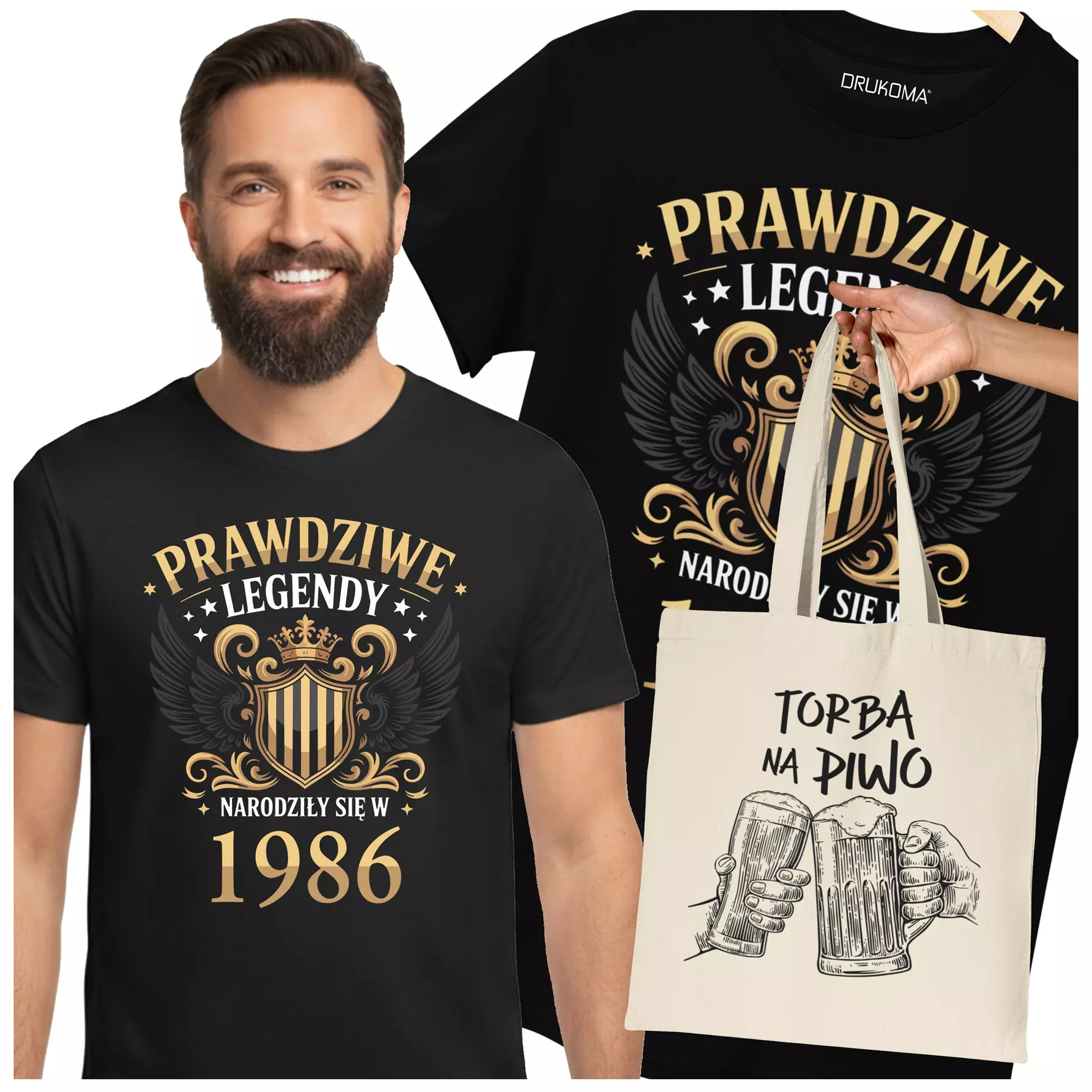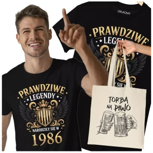 Koszulka z torbą na urodziny na 40 CZERDZISTKĘ z napisem: "PRAWDZIWE LEGENDY NARODZIŁY SIĘ W 1986"