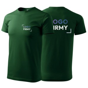 Koszulka zieleń butelkowa z krótkim rękawem z logo na sercu i plecach męska z nadrukiem logo firmy 160g BASIC129 kolor 06 koszulka krótki rękaw