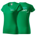 Koszulka zieleń trawy z krótkim rękawem z logo na sercu i plecach damska z nadrukiem logo firmy 160g BASIC134 kolor 16 koszulka krótki rękaw
