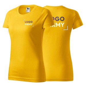 Koszulka żółta z krótkim rękawem z logo na sercu i plecach damska z nadrukiem logo firmy 160g BASIC134 kolor 04 koszulka krótki rękaw