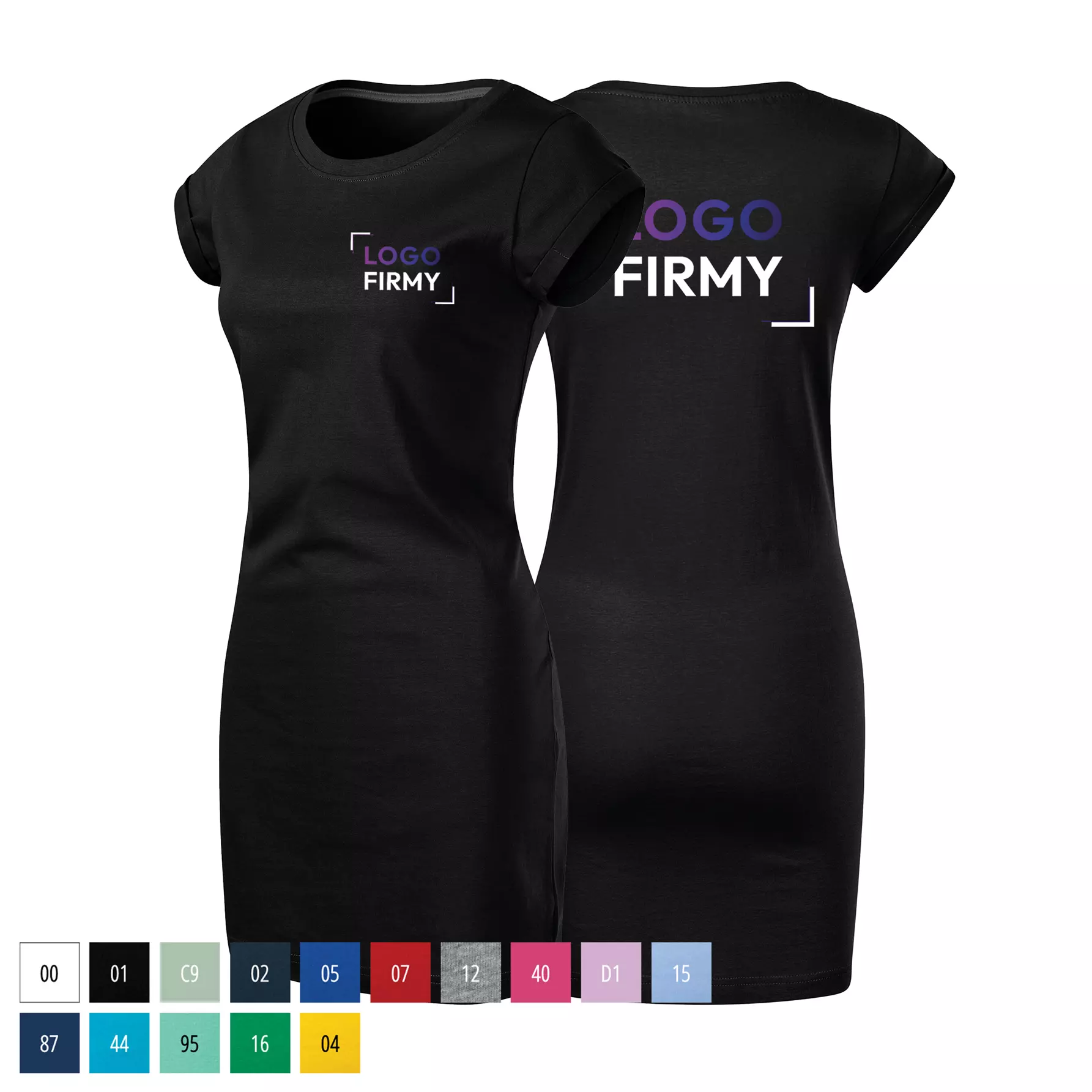 Koszulka/sukienka damska 180g Freedom178 z logo własnym nadrukiem na sercu i plecach odzież reklamowa WSZYSTKIE KOLORY