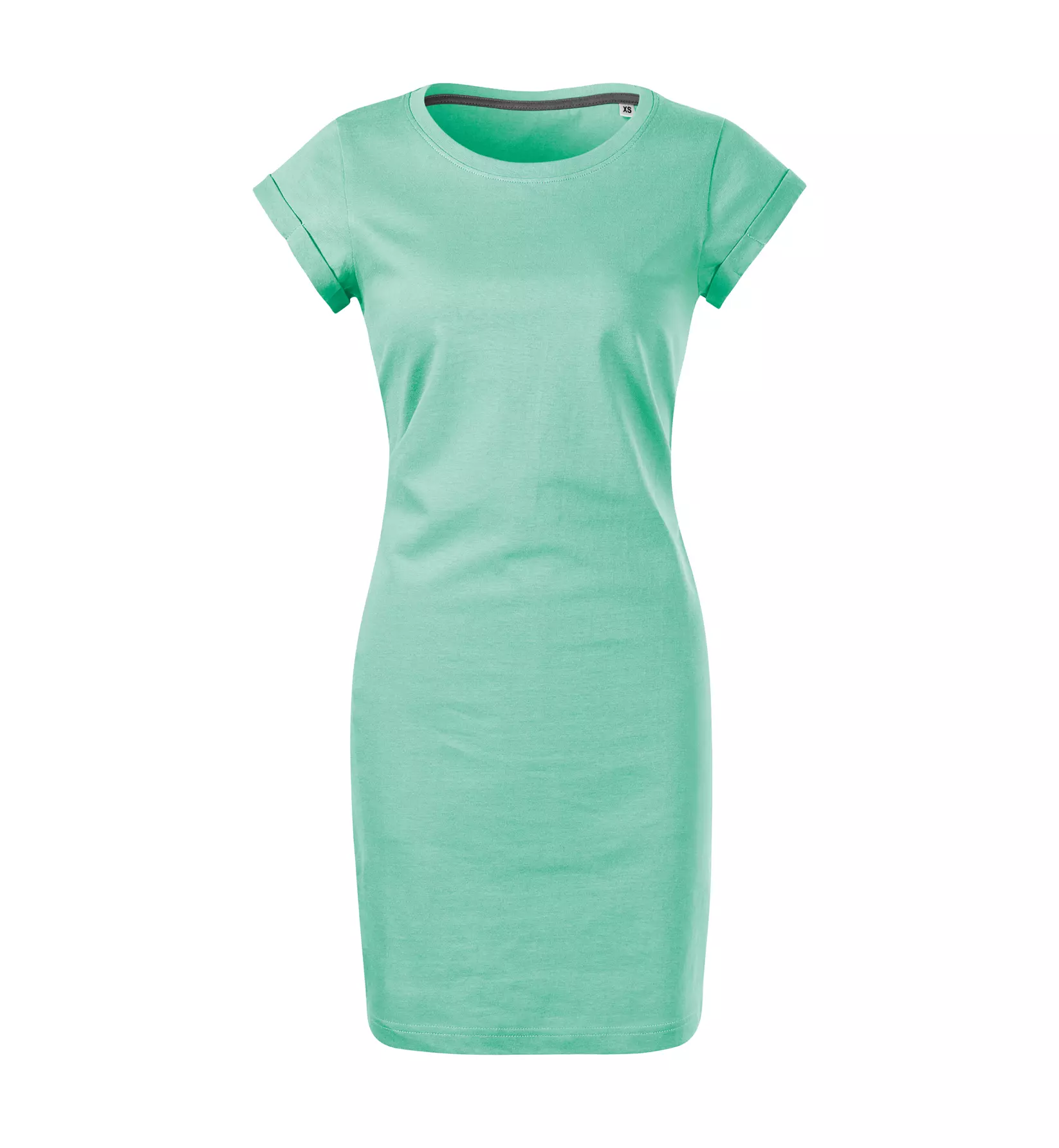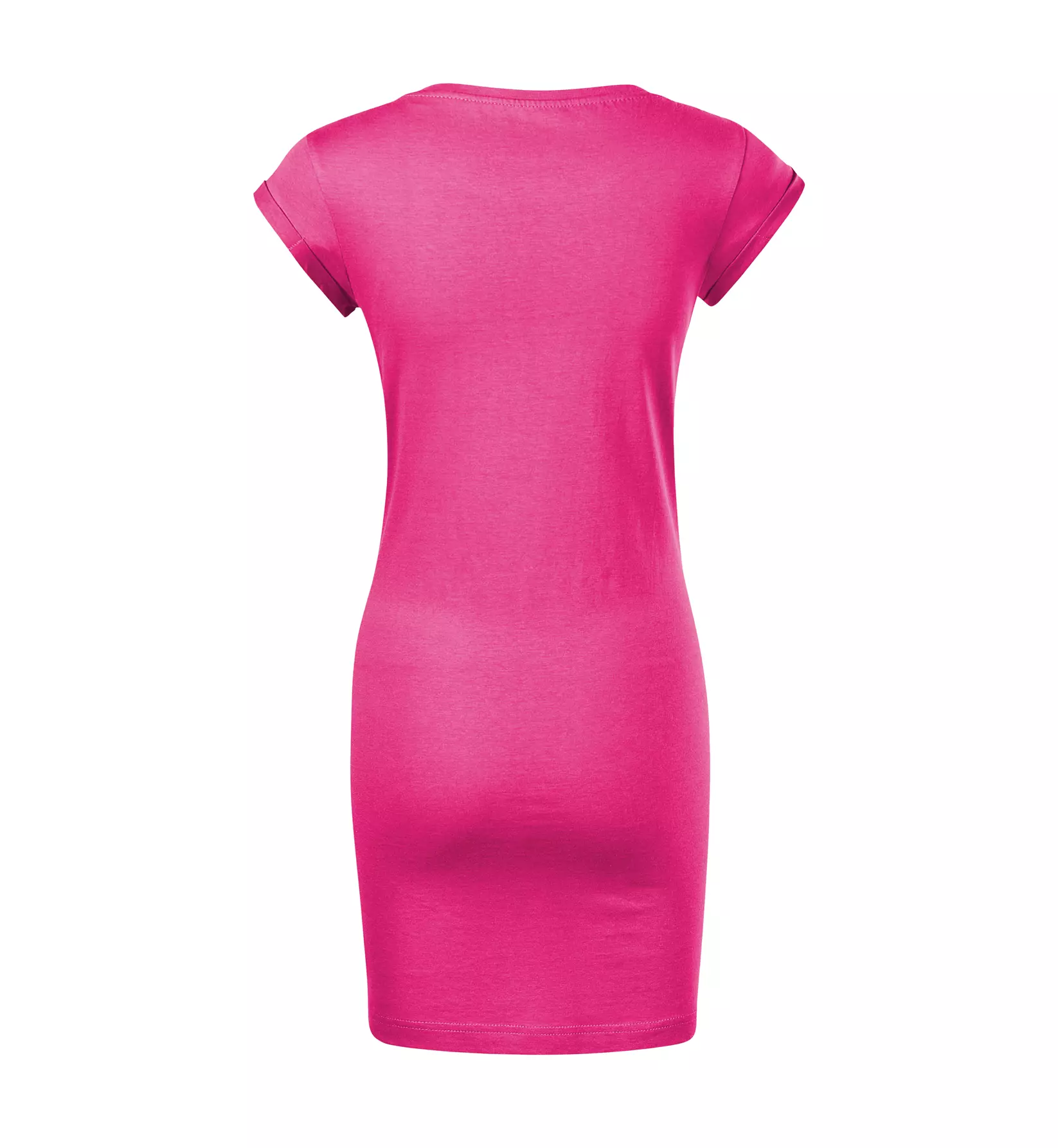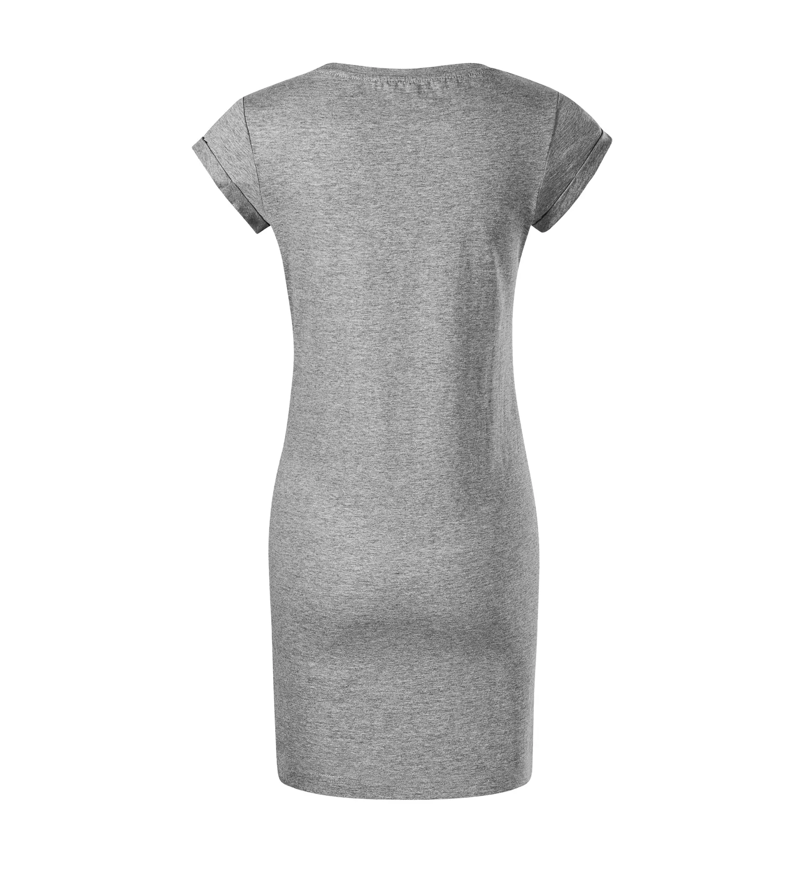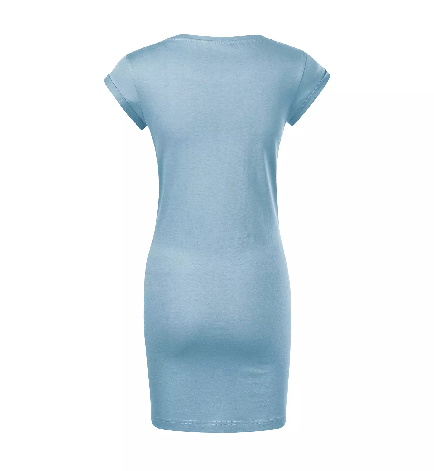 Damska sukienka Freedom 178 to stylowy i komfortowy model o gramaturze 180 g/m², wykonany w 100% z wysokiej jakości bawełny Single Jersey. Charakteryzuje się luźnym, lekko profilowanym krojem ze szwami bocznymi oraz długością powyżej kolan, co zapewnia swobodę ruchów i nowoczesny wygląd. Sukienka posiada szerszą okrągłą lamówkę wykończoną materiałem wierzchnim z dodatkiem 5% elastanu, a jej ramiona oraz kark zostały wzmocnione taśmami dla zachowania stabilności fasonu. Unikalnym detalem są podwinięte rękawy przyszyte w czterech punktach. Produkt należy do linii "label free", co oznacza brak głównej etykiety i gotowość do rebrandingu, stanowiąc idealną bazę pod personalizację za pomocą haftu, druku cyfrowego czy sitodruku.