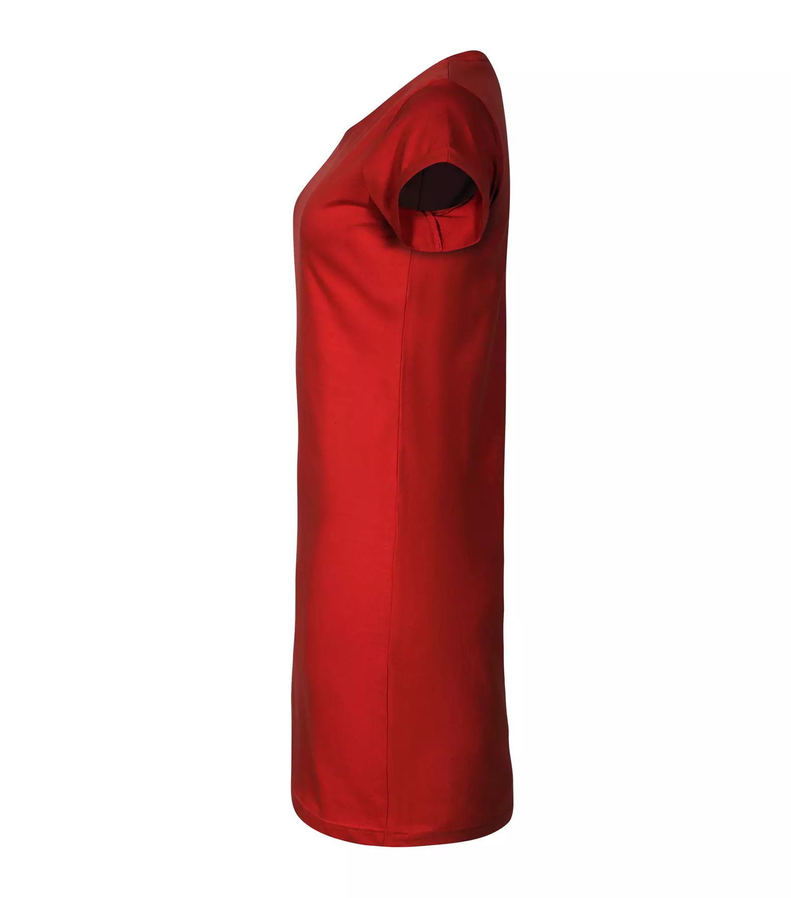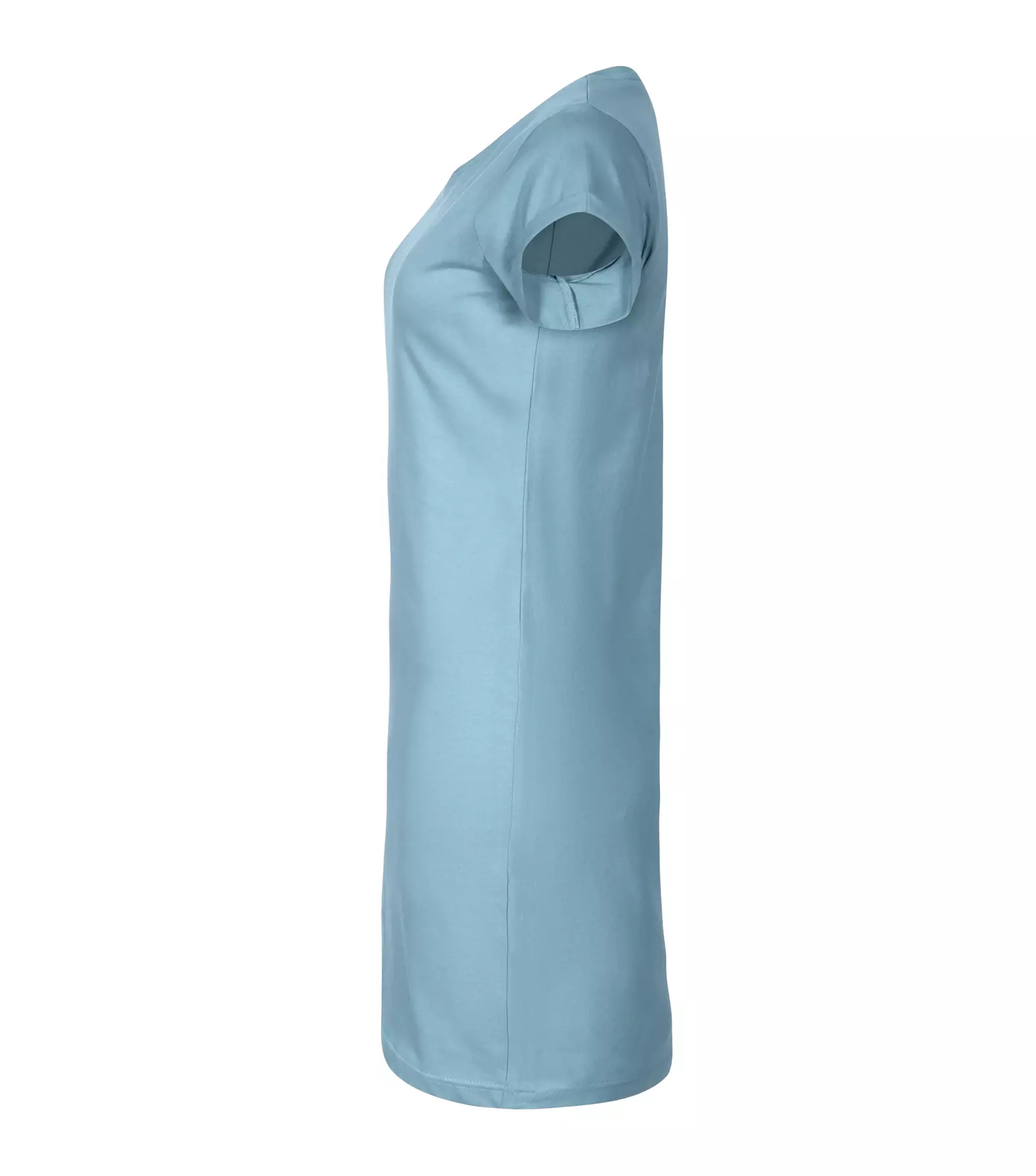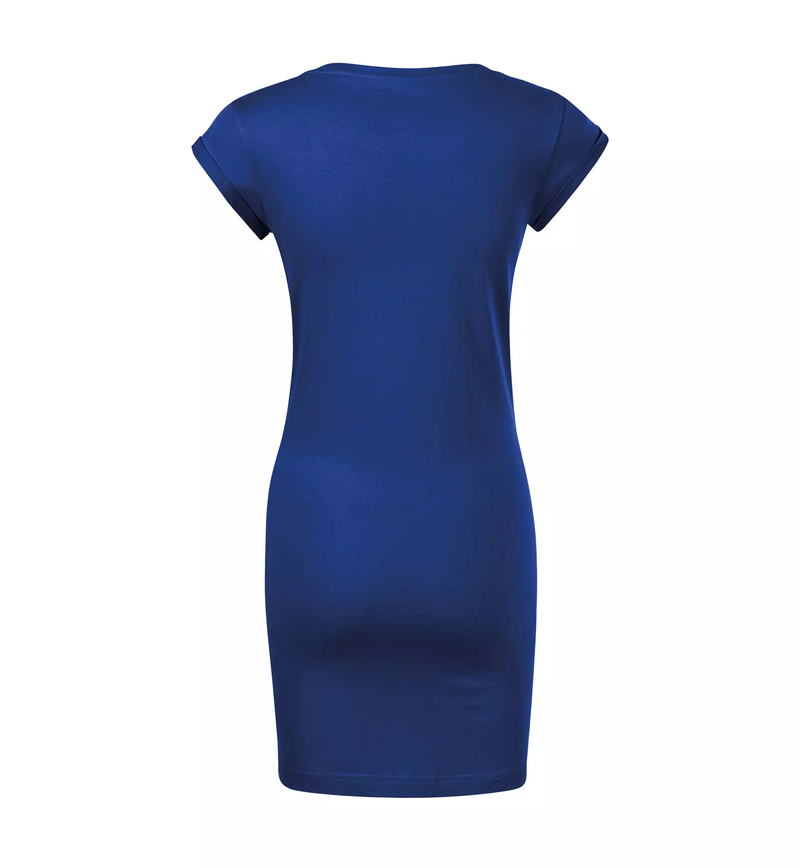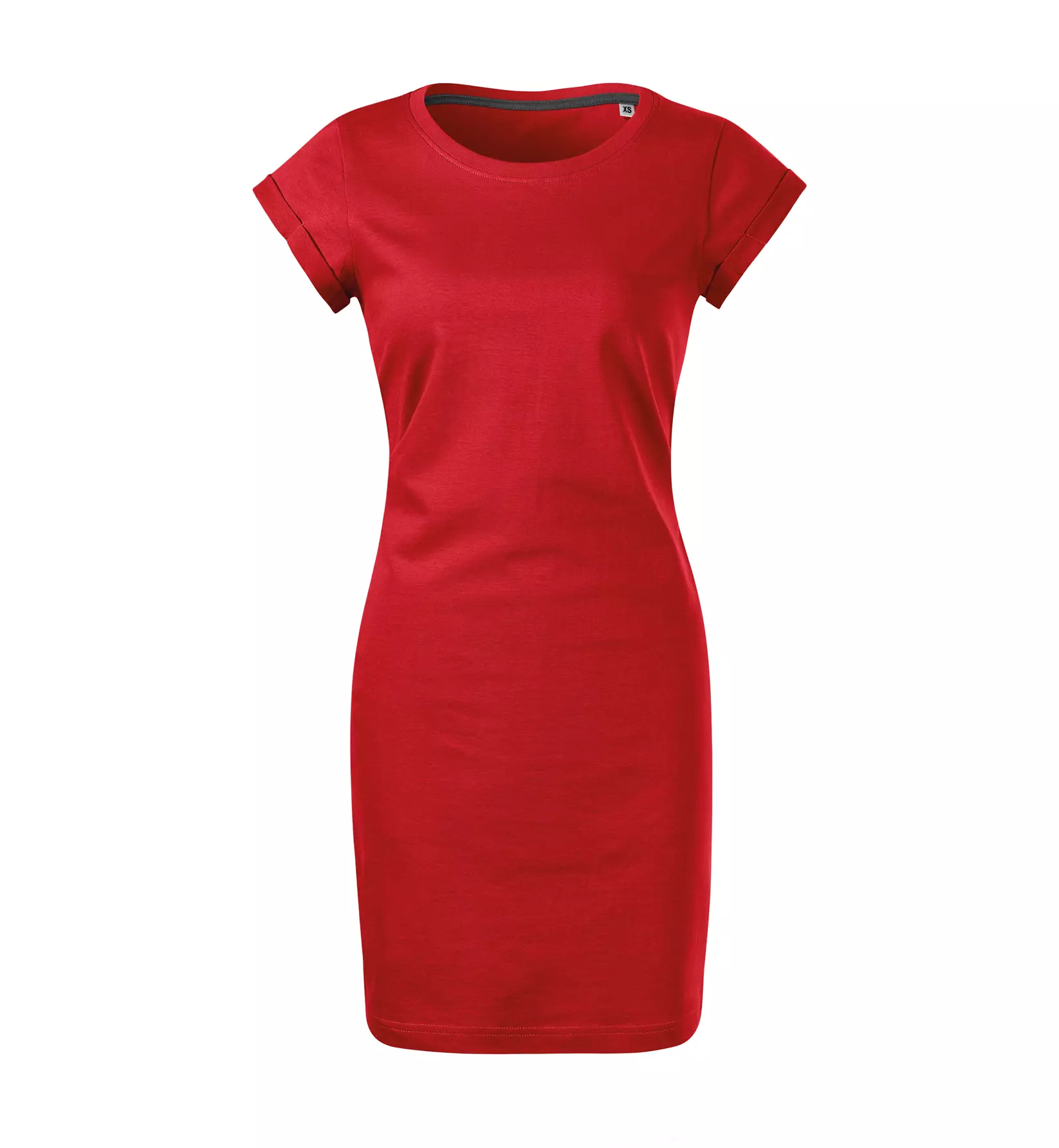 Damska sukienka Freedom 178 to stylowy i komfortowy model o gramaturze 180 g/m², wykonany w 100% z wysokiej jakości bawełny Single Jersey. Charakteryzuje się luźnym, lekko profilowanym krojem ze szwami bocznymi oraz długością powyżej kolan, co zapewnia swobodę ruchów i nowoczesny wygląd. Sukienka posiada szerszą okrągłą lamówkę wykończoną materiałem wierzchnim z dodatkiem 5% elastanu, a jej ramiona oraz kark zostały wzmocnione taśmami dla zachowania stabilności fasonu. Unikalnym detalem są podwinięte rękawy przyszyte w czterech punktach. Produkt należy do linii "label free", co oznacza brak głównej etykiety i gotowość do rebrandingu, stanowiąc idealną bazę pod personalizację za pomocą haftu, druku cyfrowego czy sitodruku.