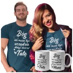 Koszulki dla Rodziców na Dzień Mamy i Taty zestaw z kubkami z napisem Bóg nie może być wszędzie dlatego stworzył Mamę i Bóg nie może być wszędzie dlatego stworzył Tatę w kolorze petrol blue