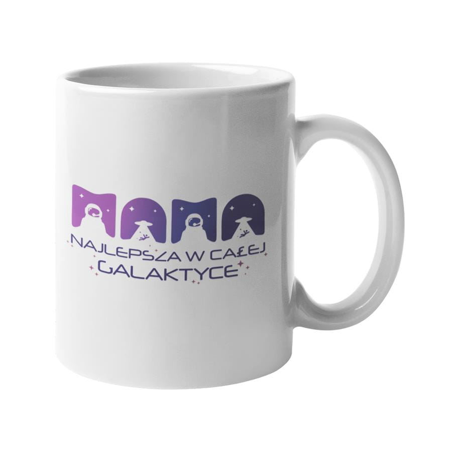 Koszulki dla Rodziców na Dzień Mamy i Taty zestaw z kubkami z napisem Mama najlepsza w całej galaktyce i Tata najlepszy w całej galaktyce w kolorze granatowym