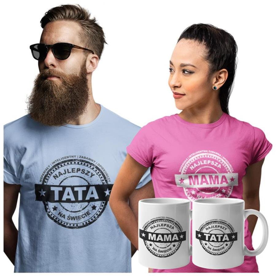 Koszulki z napisem "Najlepsza mama na świecie" i "Najlepszy tata na świecie".