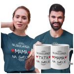Koszulki dla Rodziców na Dzień Mamy i Taty zestaw z kubkami z napisem Najukochańsza mama na świecie i Najukochańszy tata na świecie w kolorze petrol blue