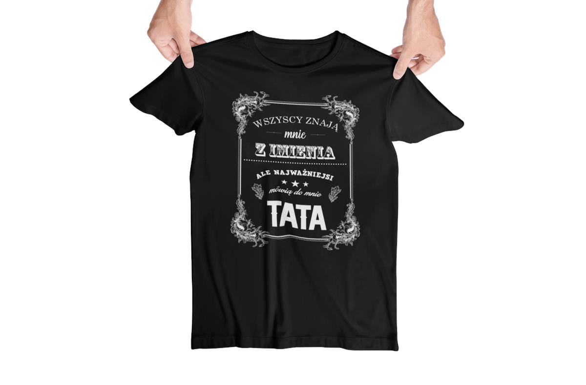 Koszulki z napisem "Wszyscy znają mnie z imienia, ale najważniejsi mówią do mnie mama" i "Wszyscy znają mnie z imienia, ale najważniejsi mówią do mnie tata".