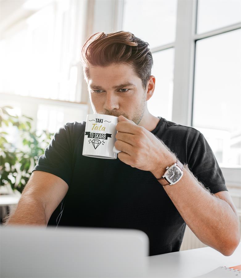 Wyjątkowy kubek z napisem "Taki Tata to skarb".